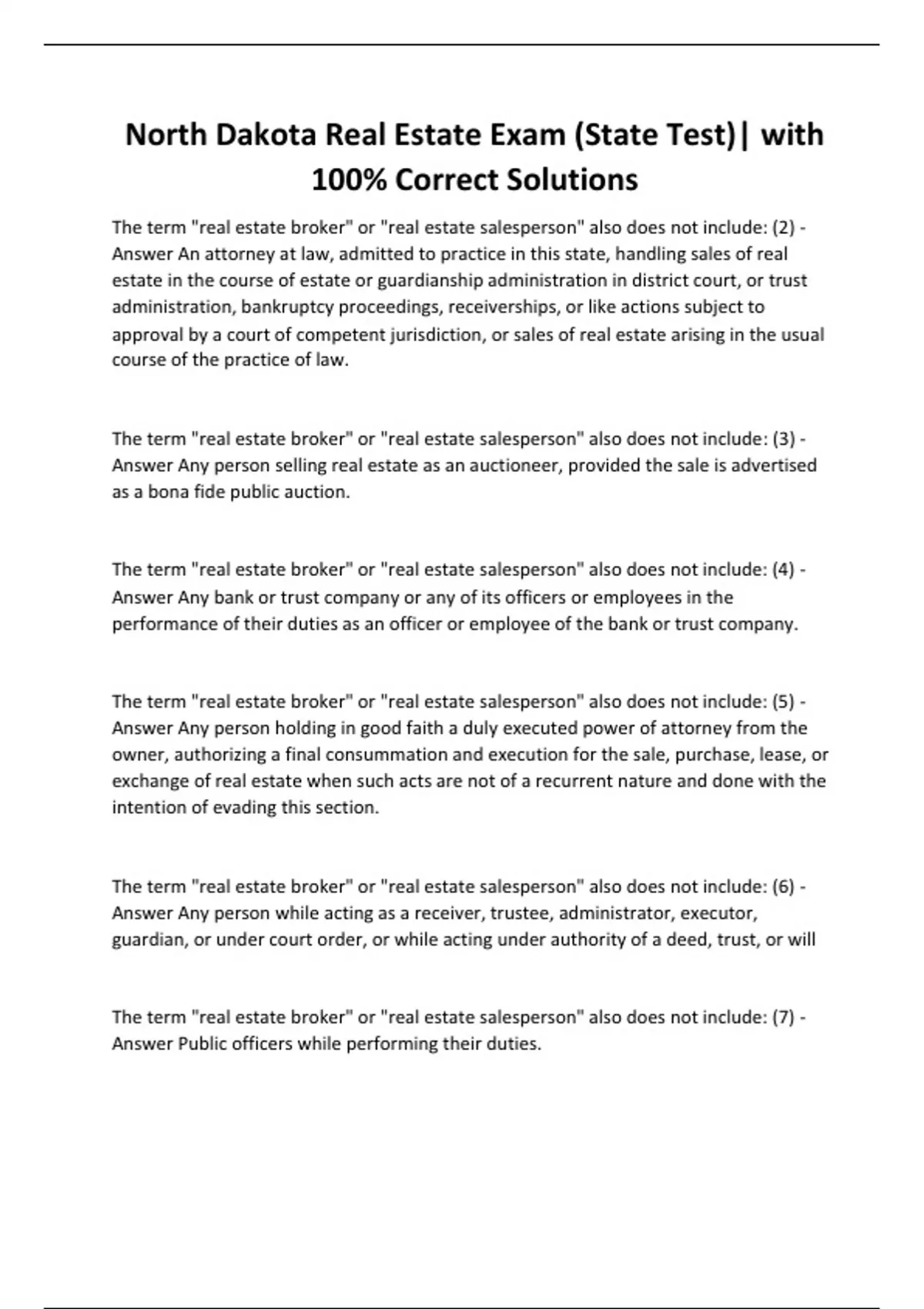 North Dakota Real Estate Exam (State Test)| with 100% Correct Solutions