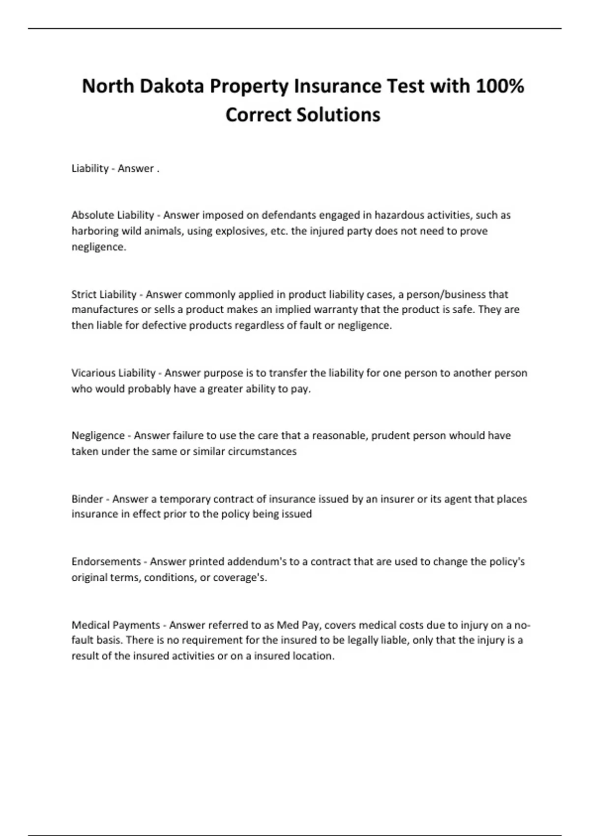 North Dakota Property Insurance Test with 100% Correct Solutions