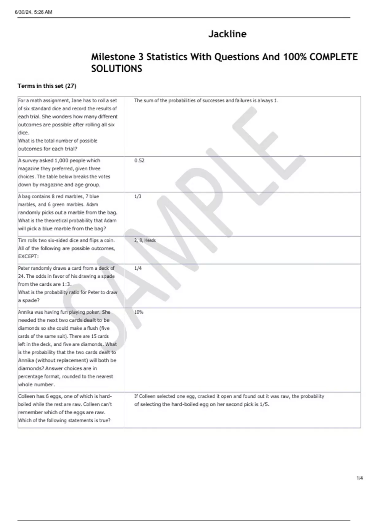 Milestone 3 Statistics With Questions And 100% COMPLETE SOLUTIONS