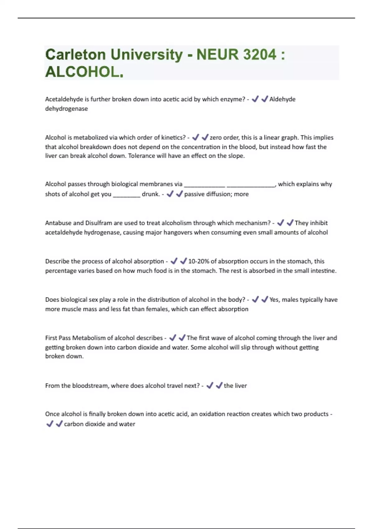 Carleton University - NEUR 3204 : ALCOHOL Questions And Answers Rated A+ 2024 Updates