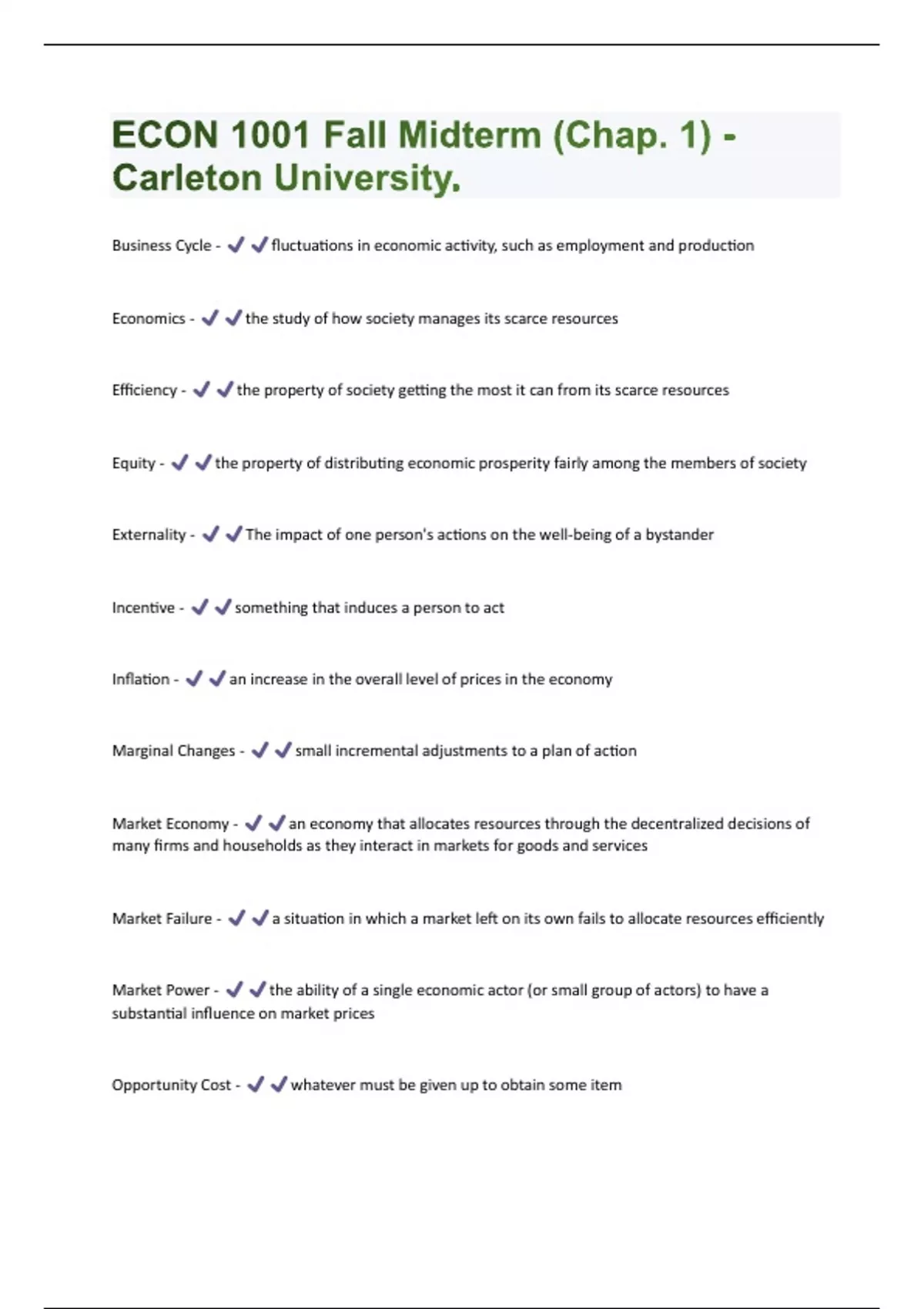 ECON 1001 Fall Midterm (Chap. 1) - Carleton University Questions With 100% Correct Answers.