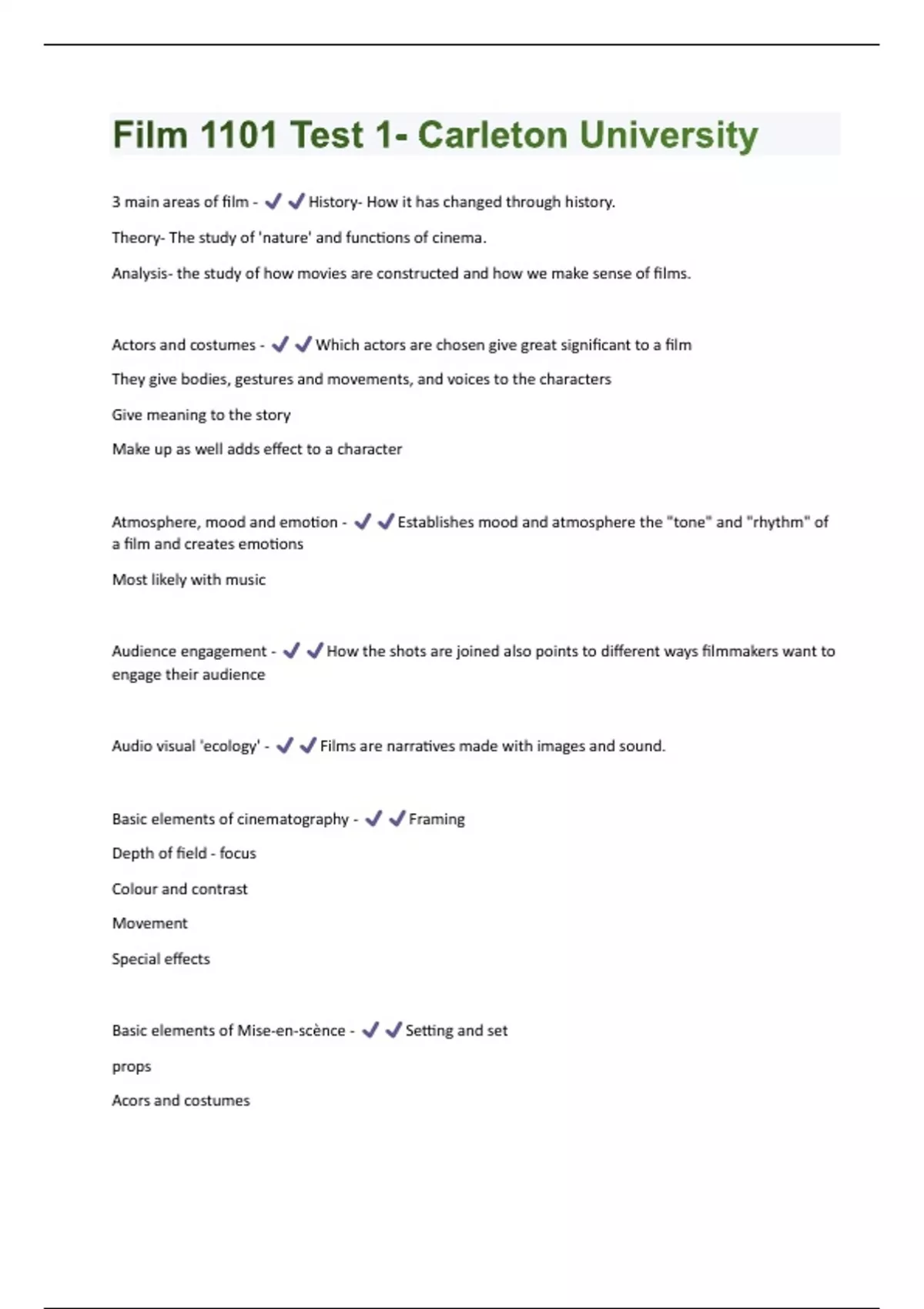 Film 1101 Test 1- Carleton University Questions And Answers Rated A+
