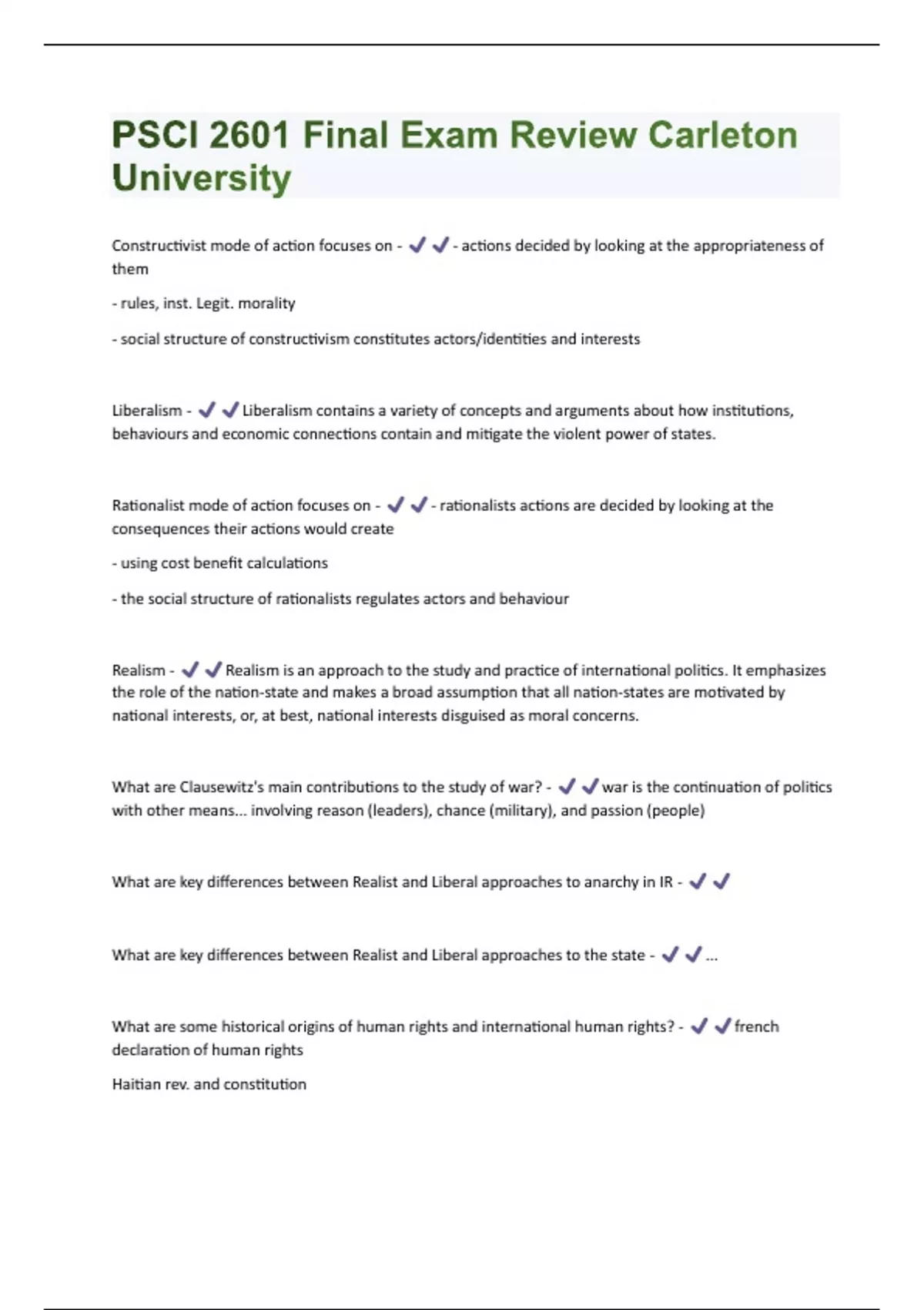 PSCI 2601 Final Exam Review Carleton University Questions And Answers With Verified Study Solutions Rated A+