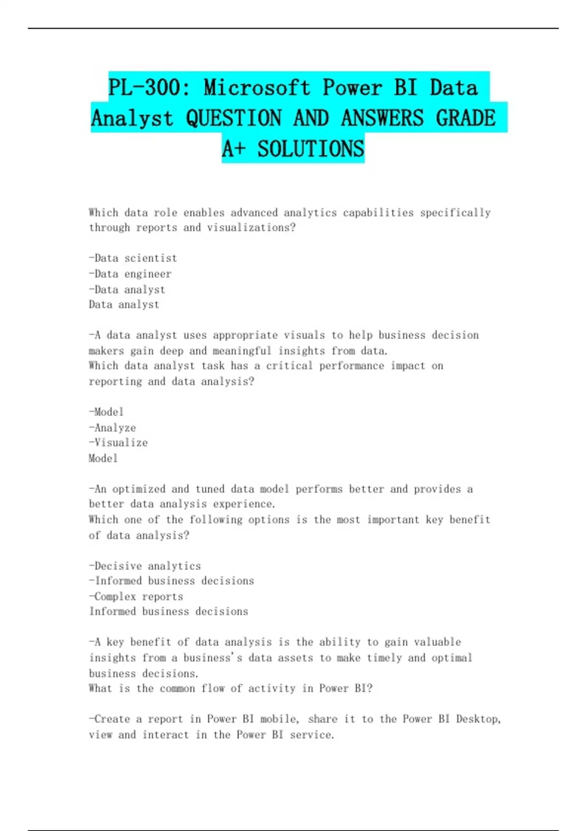 Analyst QUESTION AND ANSWERS GRADE