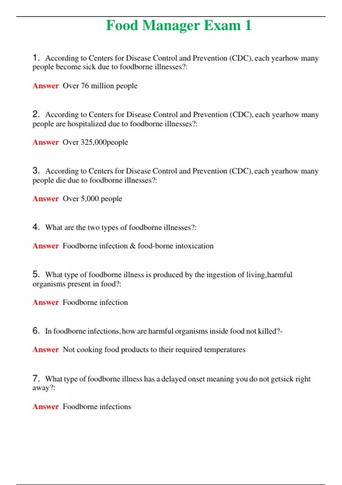 Food Manager Exam 1 (Latest 2024) Questions With Complete Grade A+ Answers