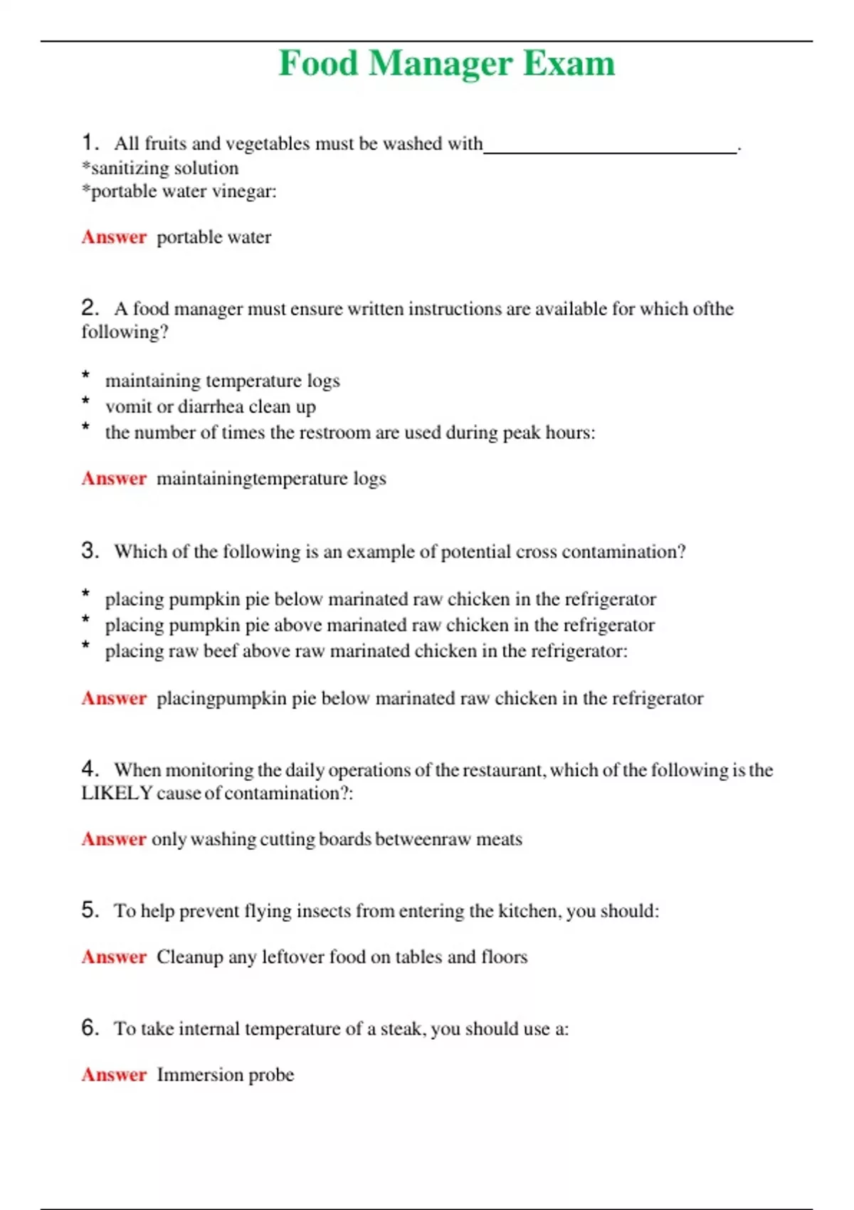food manager exam
