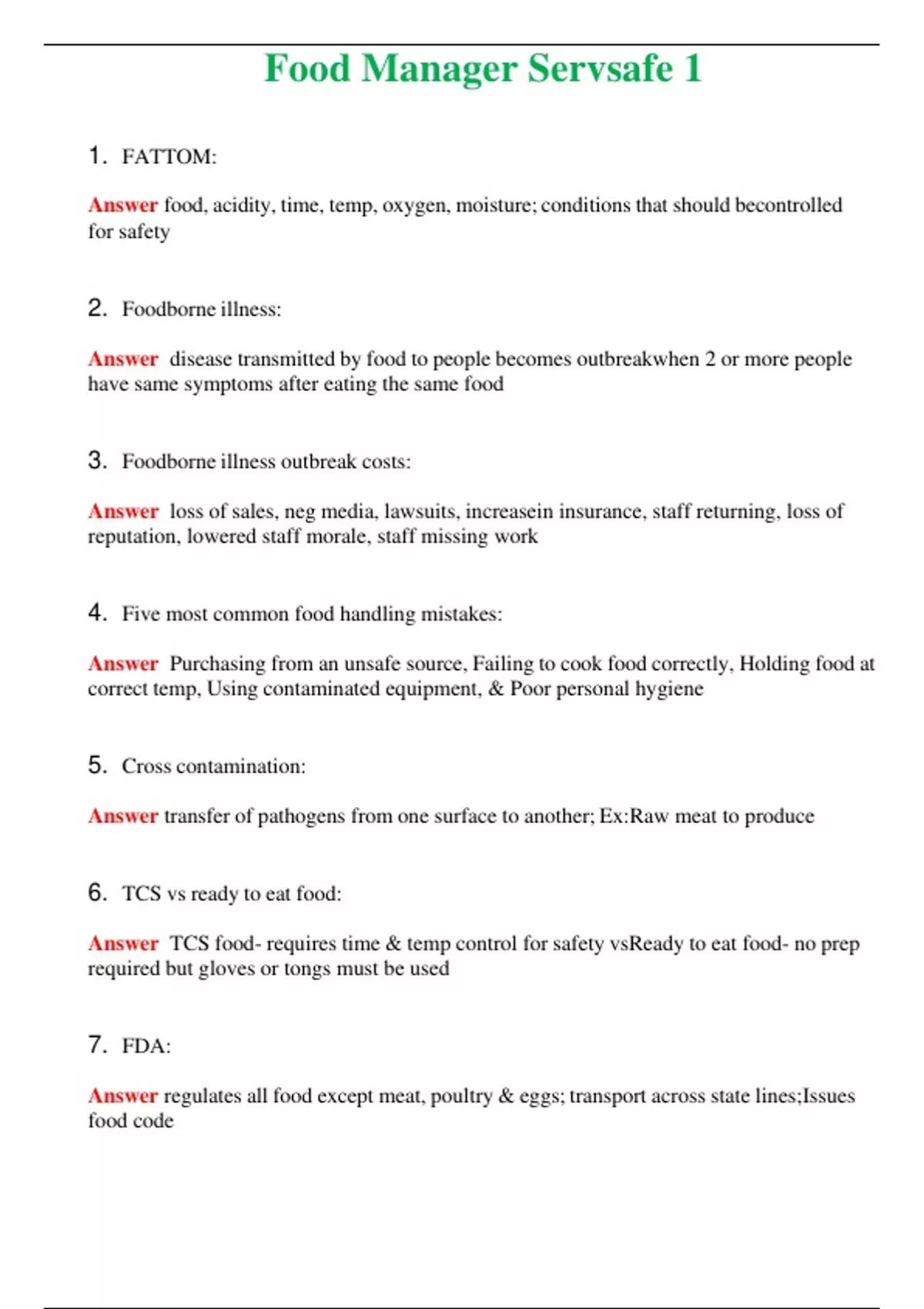 - Food Manager Servsafe 1