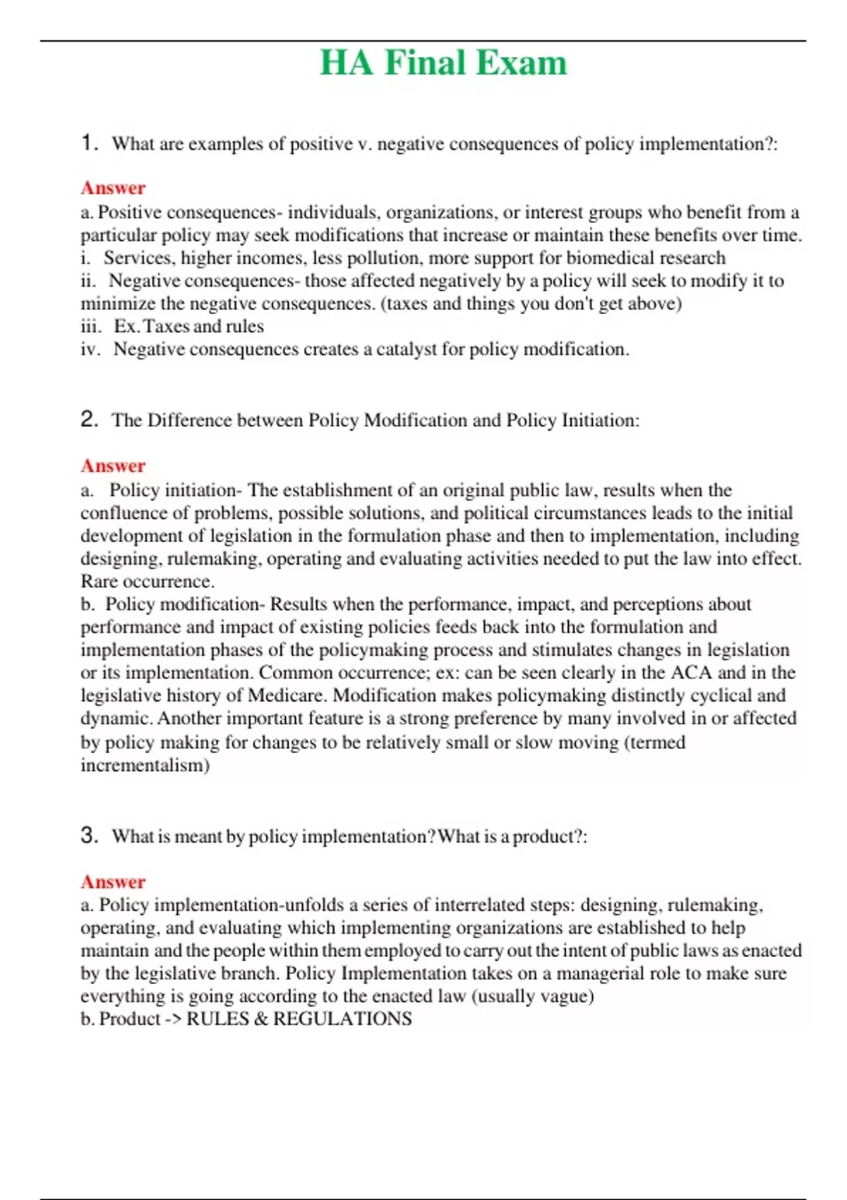 HA Final Exam (Latest 2024) Questions With Complete Grade A+ Answers