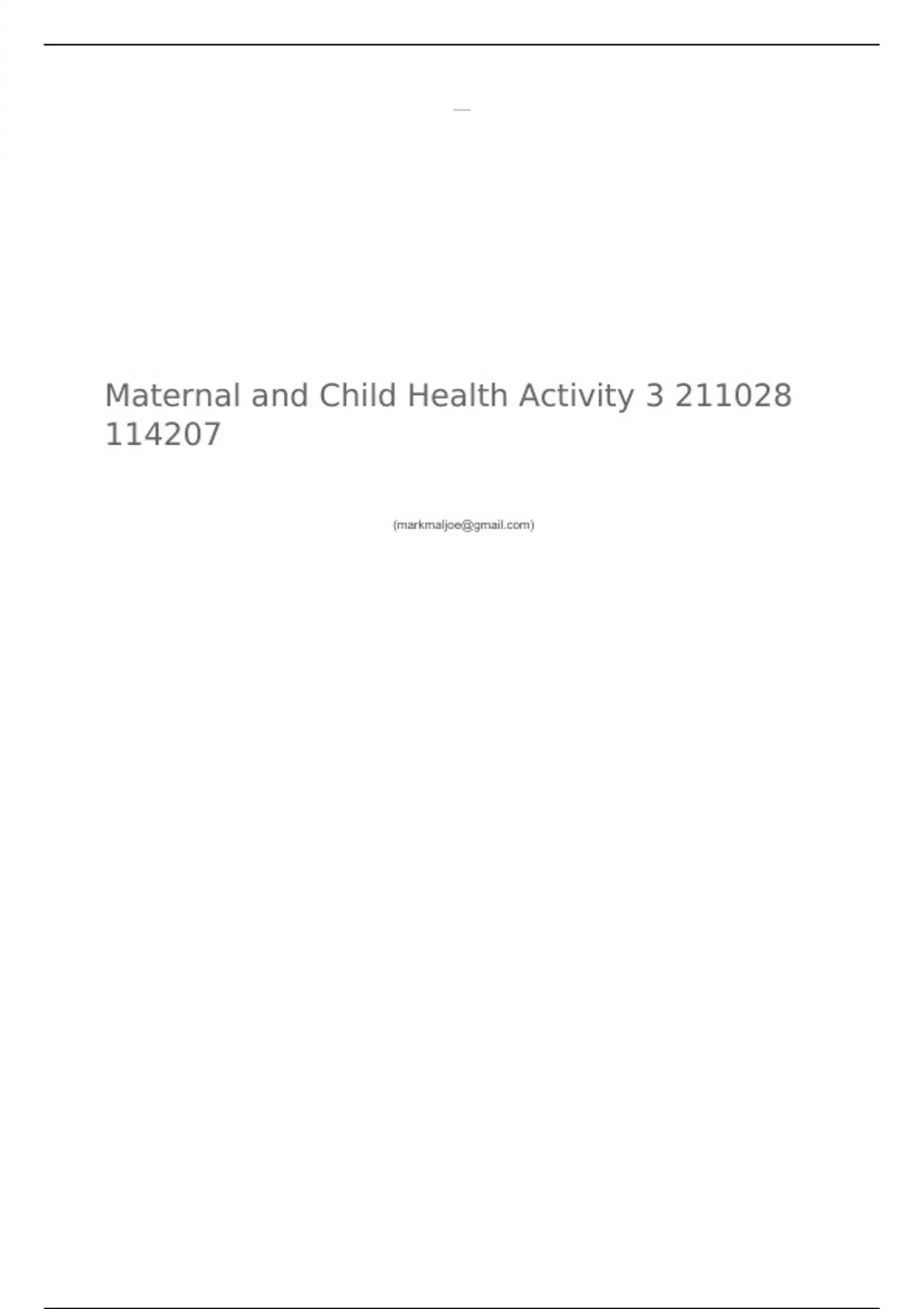 Maternal and Child Health Activity