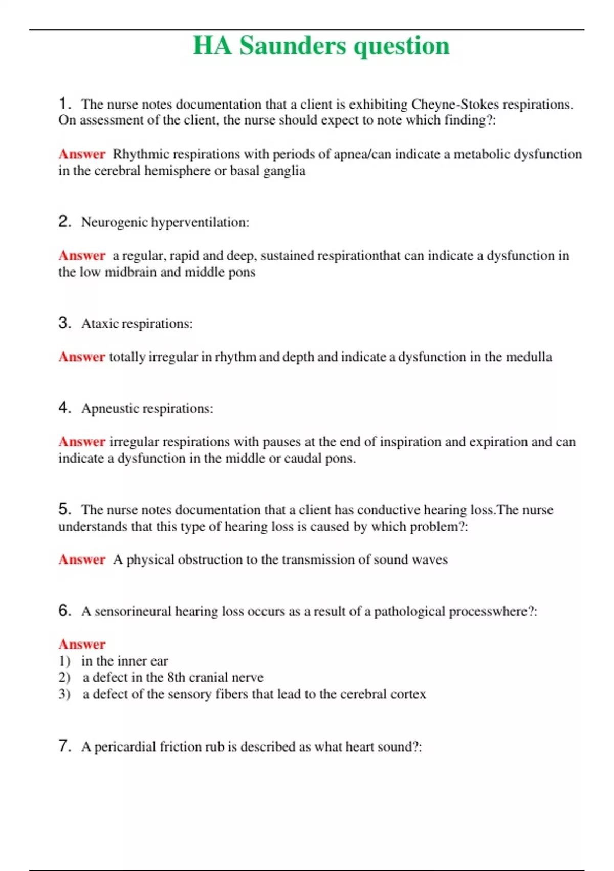 HA Saunders question (Latest 2024) Questions With Complete Grade A+ Answers