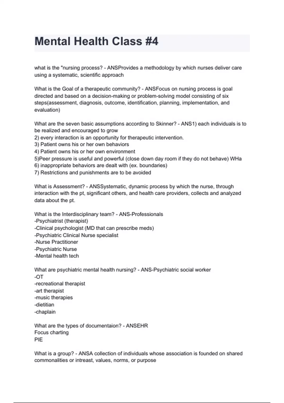 Mental Health Class #4 Questions and Answers A+ score assured 2024/2025