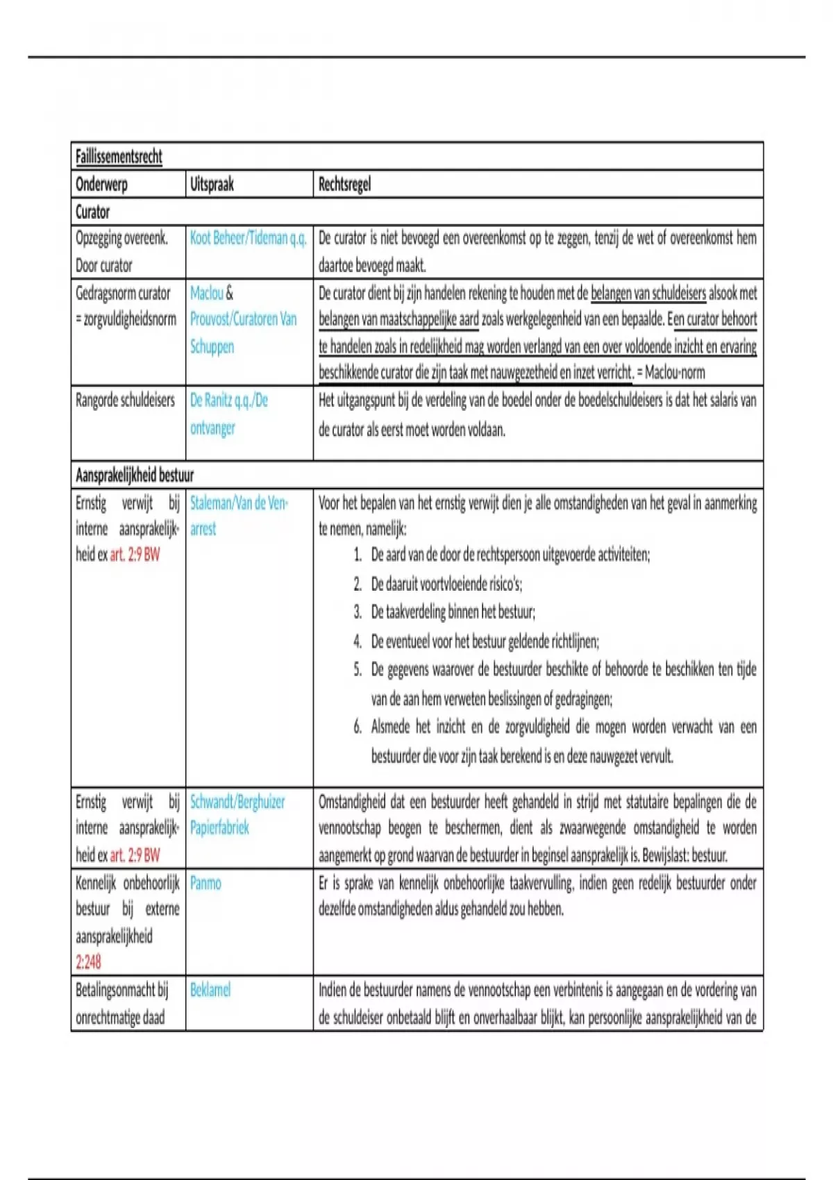 Ernstig verwijt bij Staleman/Van de Ven- Voor het bepalen van het ernstig verwijt dien je alle omstandigheden van het geval in aanmerking