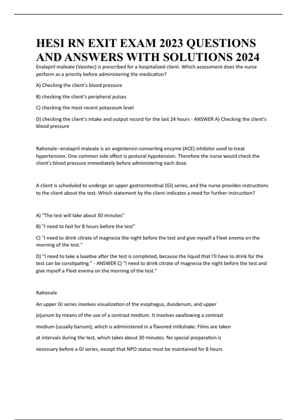 HESI RN EXIT EXAM 2023 QUESTIONS AND ANSWERS WITH SOLUTIONS 2024