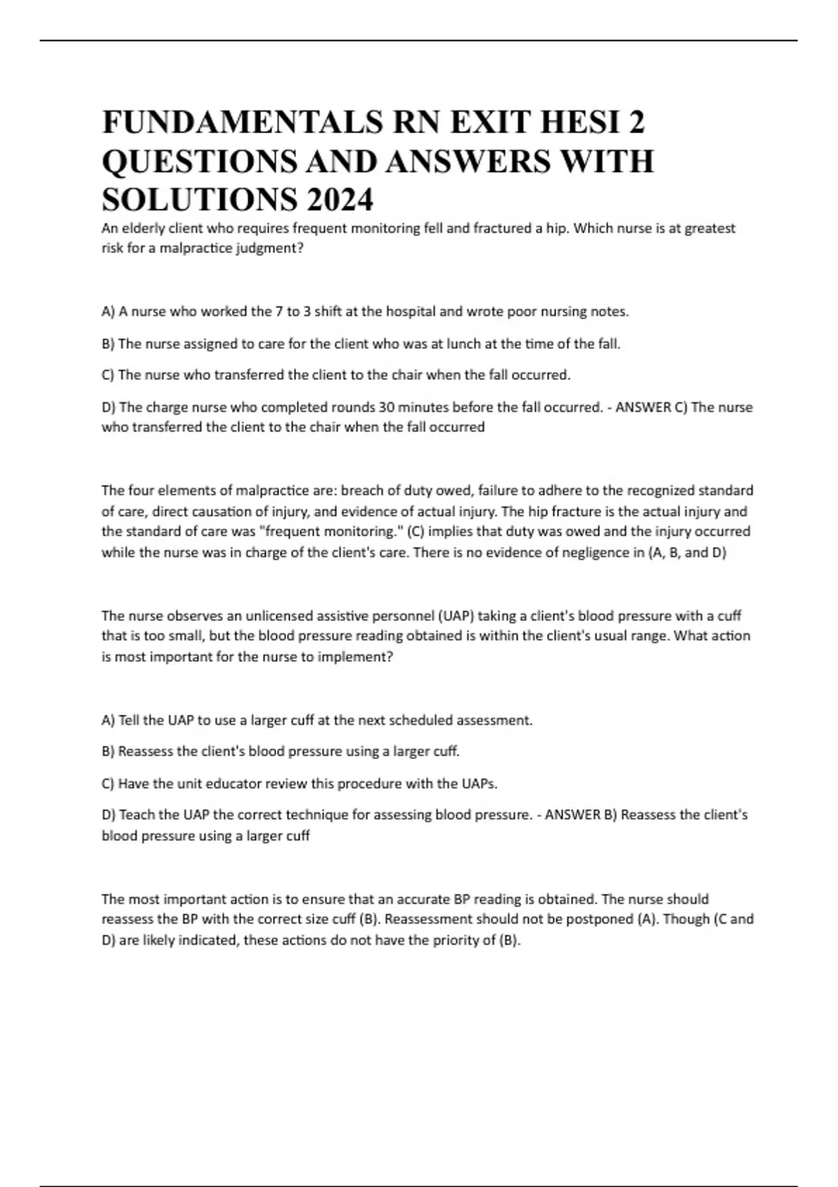 FUNDAMENTALS RN EXIT HESI 2 QUESTIONS AND ANSWERS WITH SOLUTIONS 2024