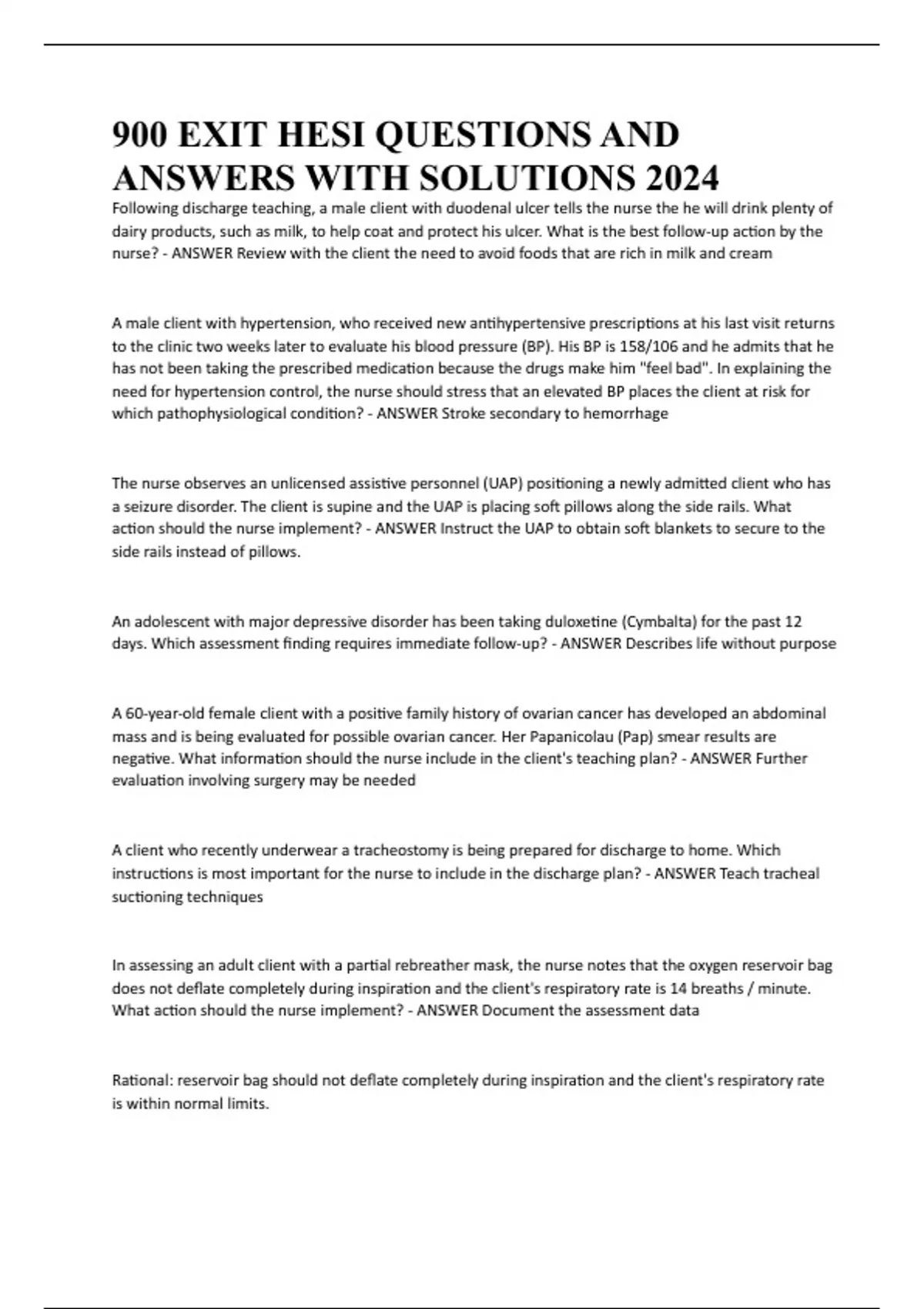 900 EXIT HESI QUESTIONS AND ANSWERS WITH SOLUTIONS 2024
