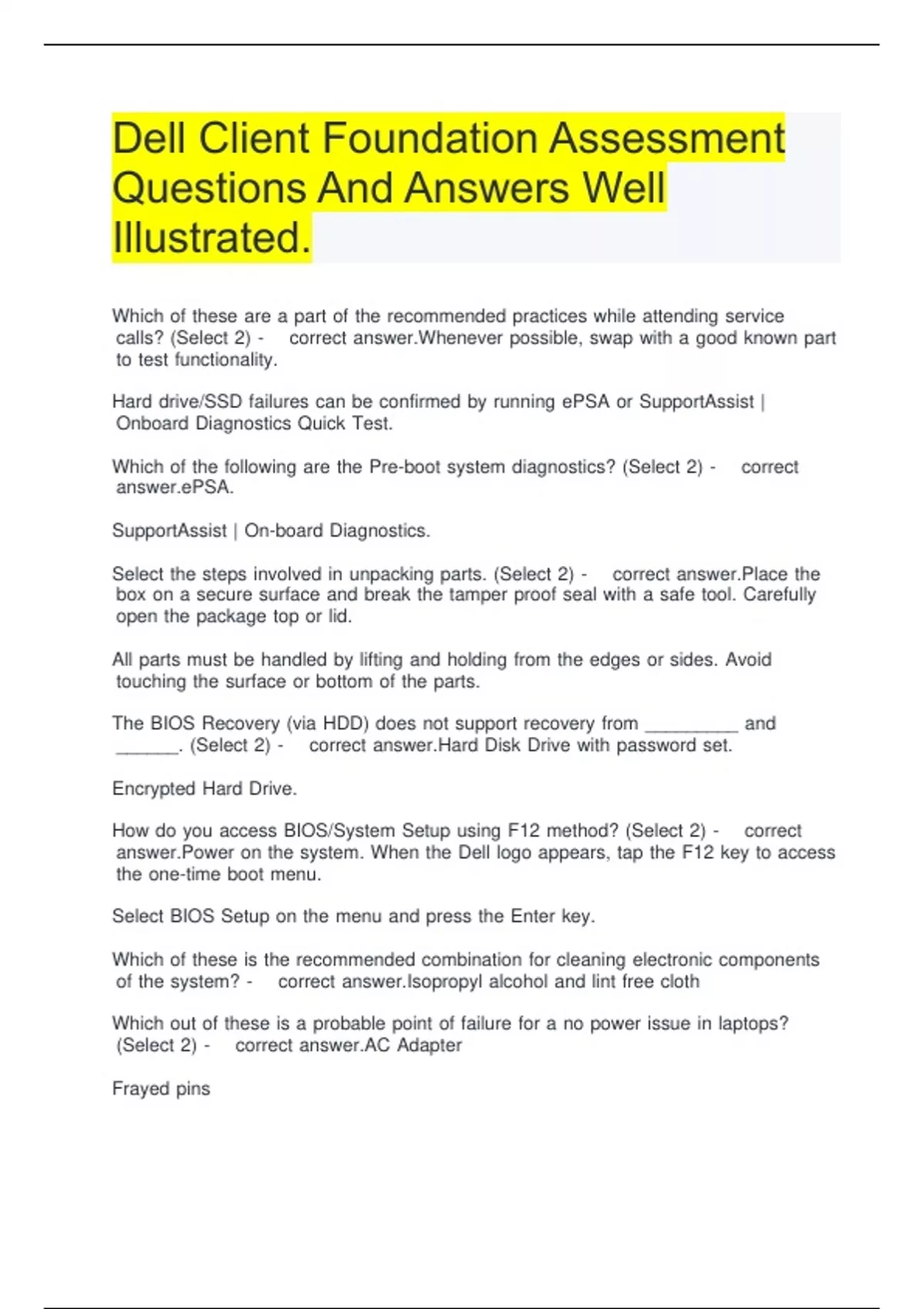 Dell Client Foundations Study Guide Questions And Answers Latest.