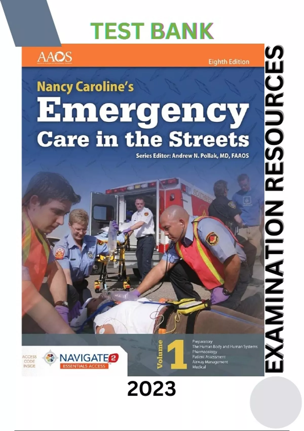 Test Bank for Nancy Caroline’s Emergency Care in the Streets 8th Edition by Nancy L. Caroline, American Academy of Orthopaedic Surgeons (AAOS)- Complete, Detailed and Latest Test Bank. All Chapters (1-53) included. #EmergencyCare #EMS #ParamedicTraining #NancyCaroline #PrehospitalCare #EMSProfessionals #EmergencyMedicalServices #LifeSavingSkills #ParamedicEducation #StreetMedicine #EmergencyResponder #EMSPreparation #MedicalEmergencies #AdvancedLifeSupport #EMSExamPrep Emergency, Care, EMS, Paramedic, Training, Nancy, Caroline, Prehospital, Professionals, Medical, Services, Life, Saving, Skills, Education, Street, Medicine, Responder, Preparation, Emergencies, Advanced, Support, Exam, Prep Test Bank for Nancy Caroline’s Emergency Care in the Streets 8th Edition by Nancy L. Caroline, American Academy of Orthopaedic Surgeons (AAOS)- Complete, Detailed and Latest Test Bank. All Chapters (1-53) included - ISBN- | ISBN-