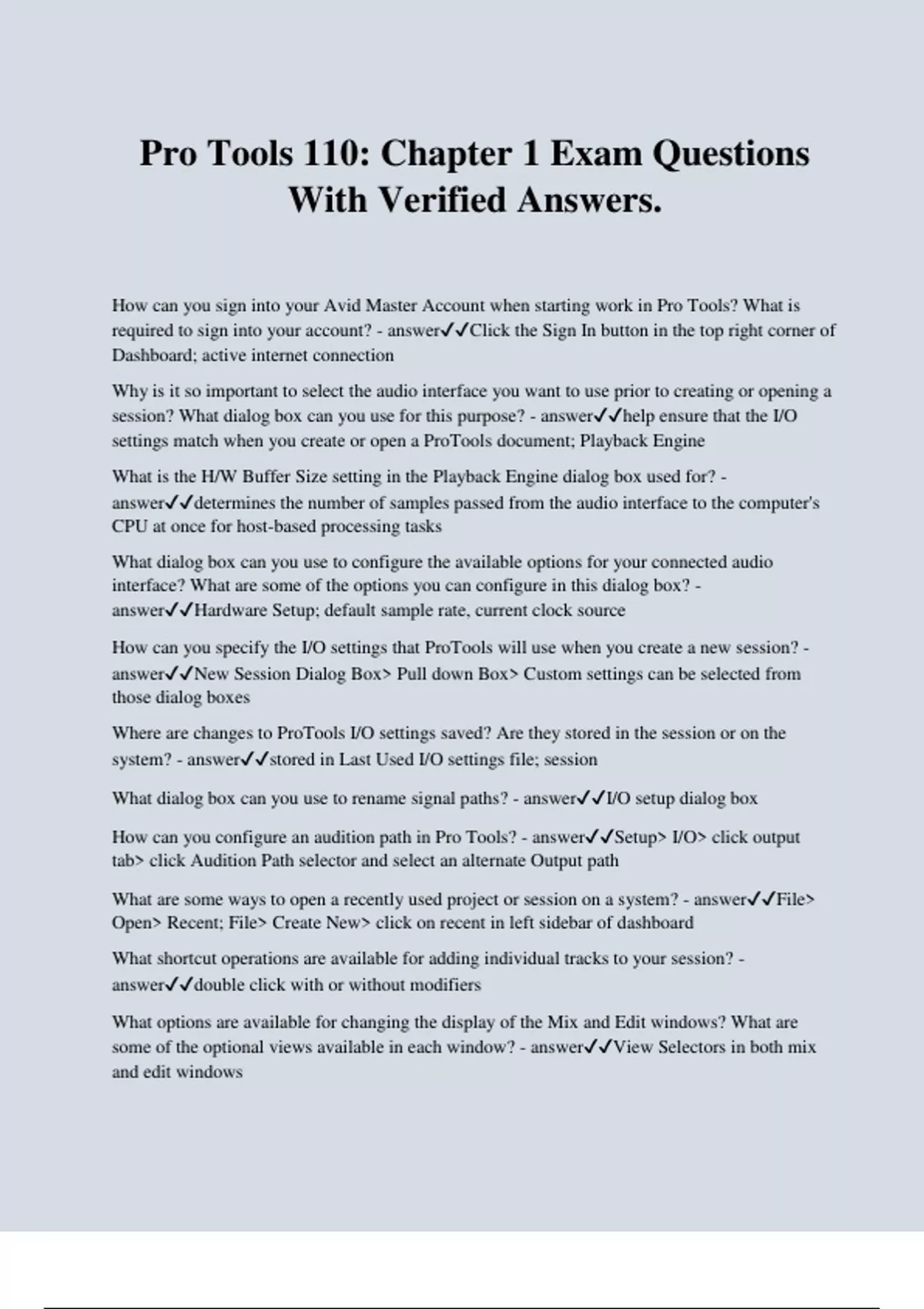Pro Tools 110: Chapter 1 Exam Questions With Verified Answers.