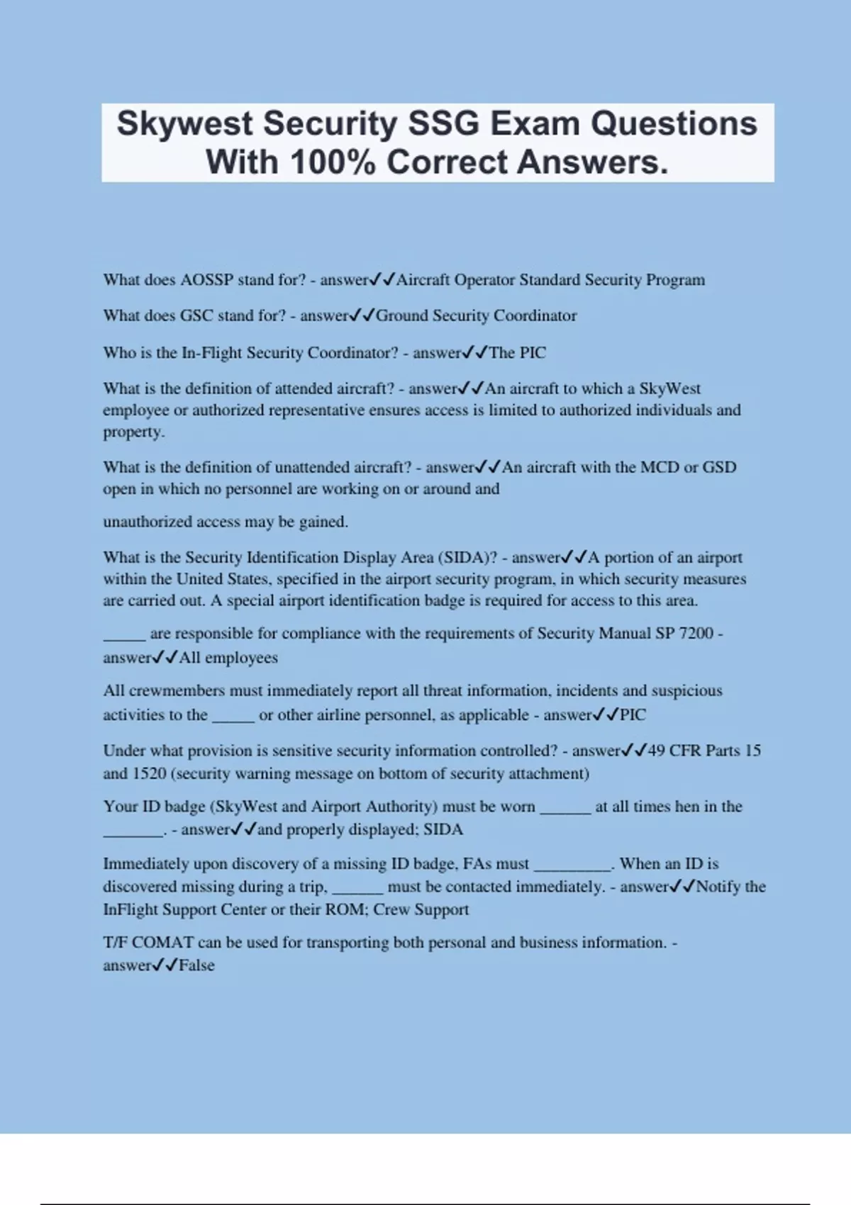 Skywest Security SSG Exam Questions With 100% Correct Answers.