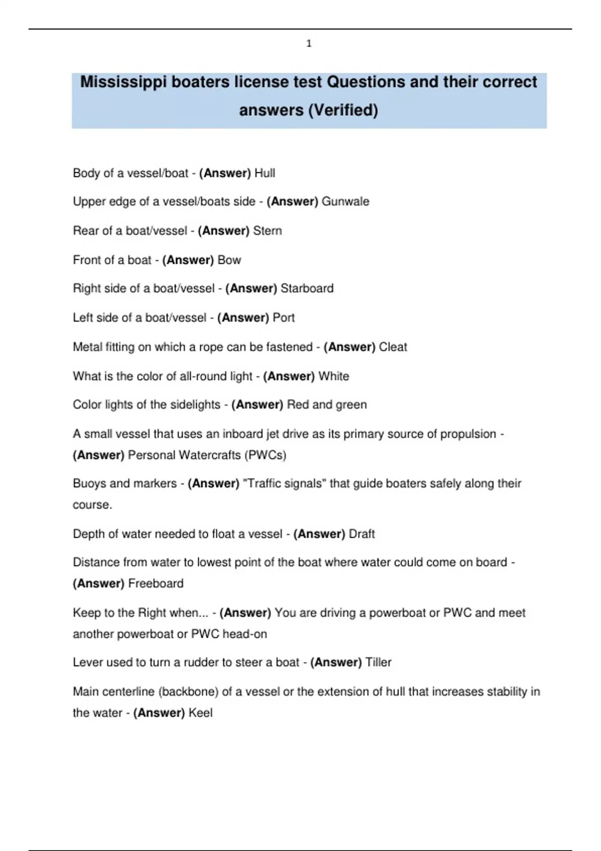 Mississippi boaters license test Questions and their correct answers (Verified)