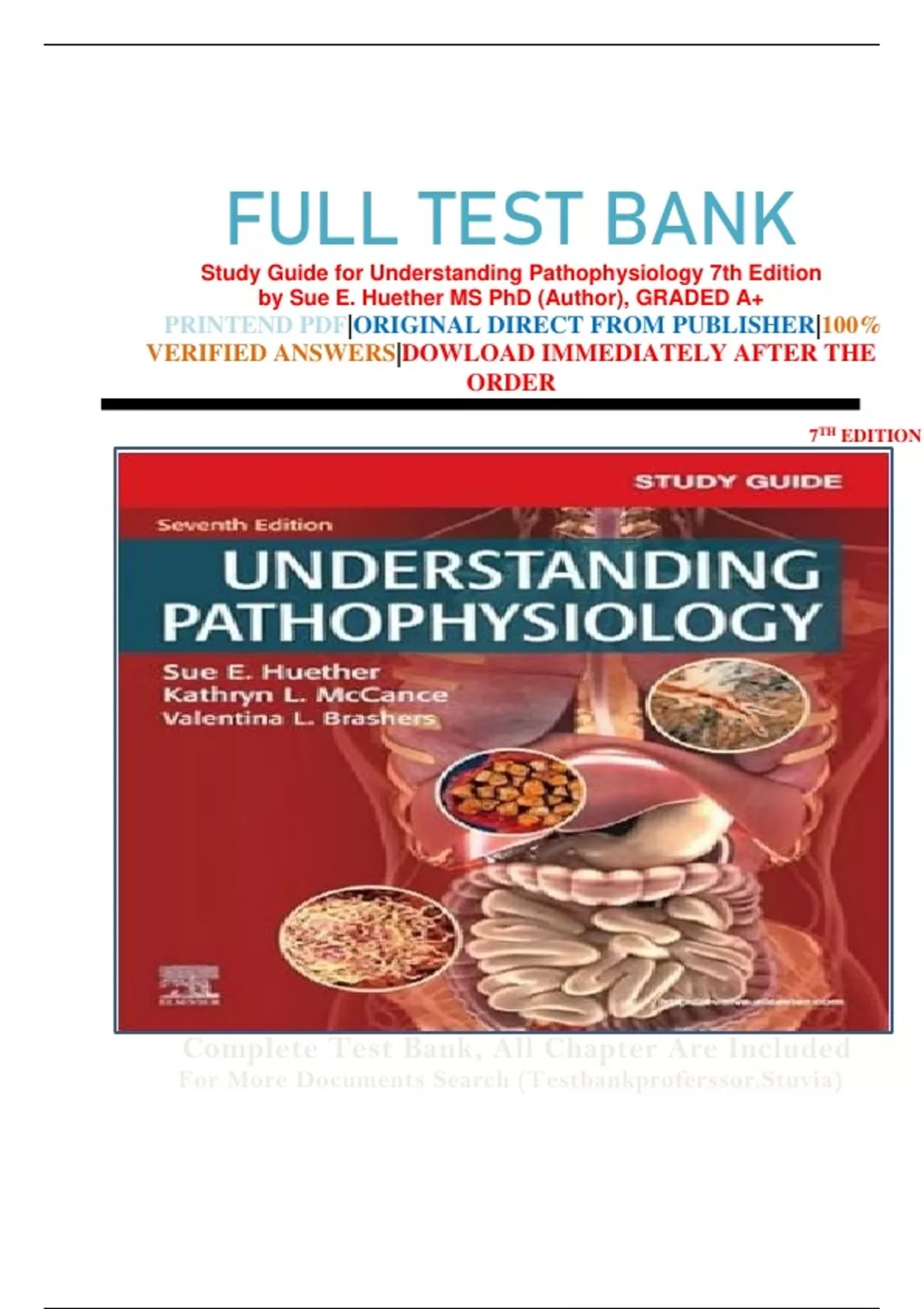 FULL TEST BANK Study Guide for Understanding Pathophysiology 7th Edition by Sue E. Huether MS PhD (Author), GRADED A+
