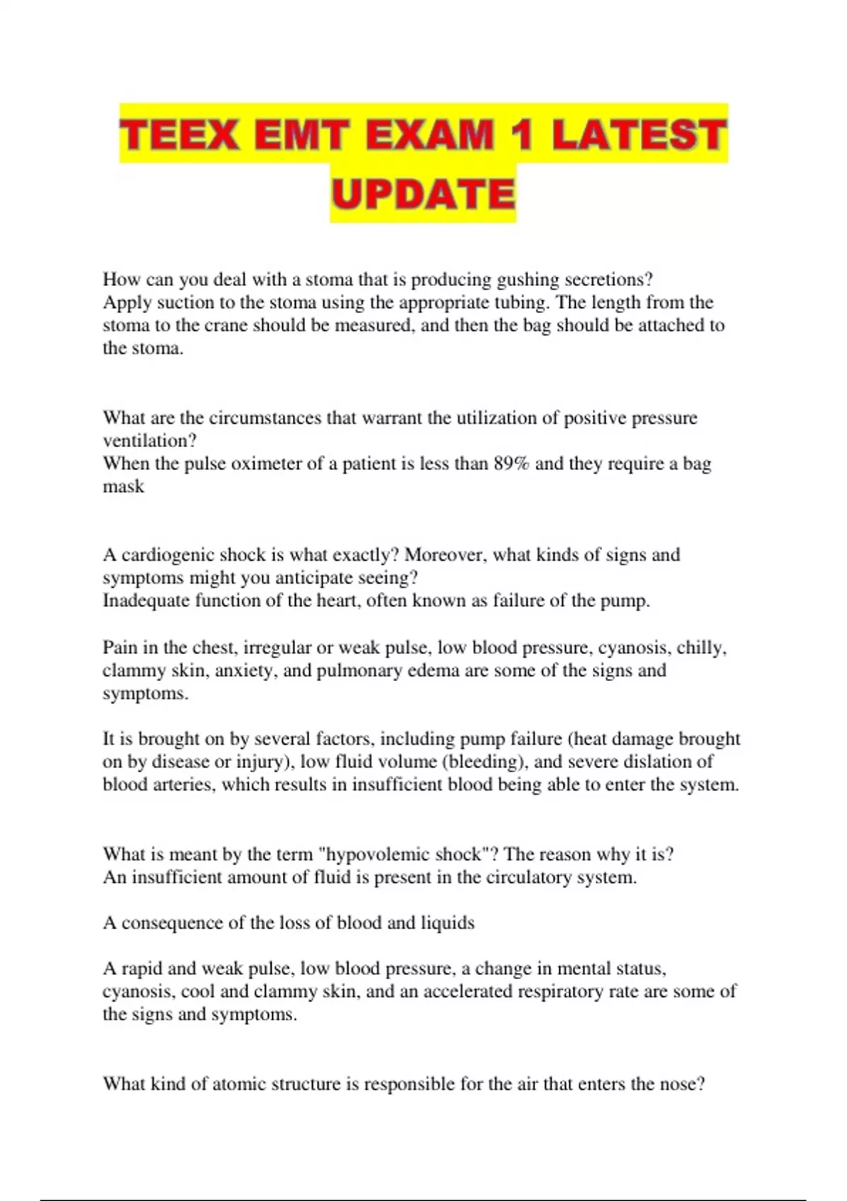 TEEX EMT EXAM 1 LATEST UPDATE...