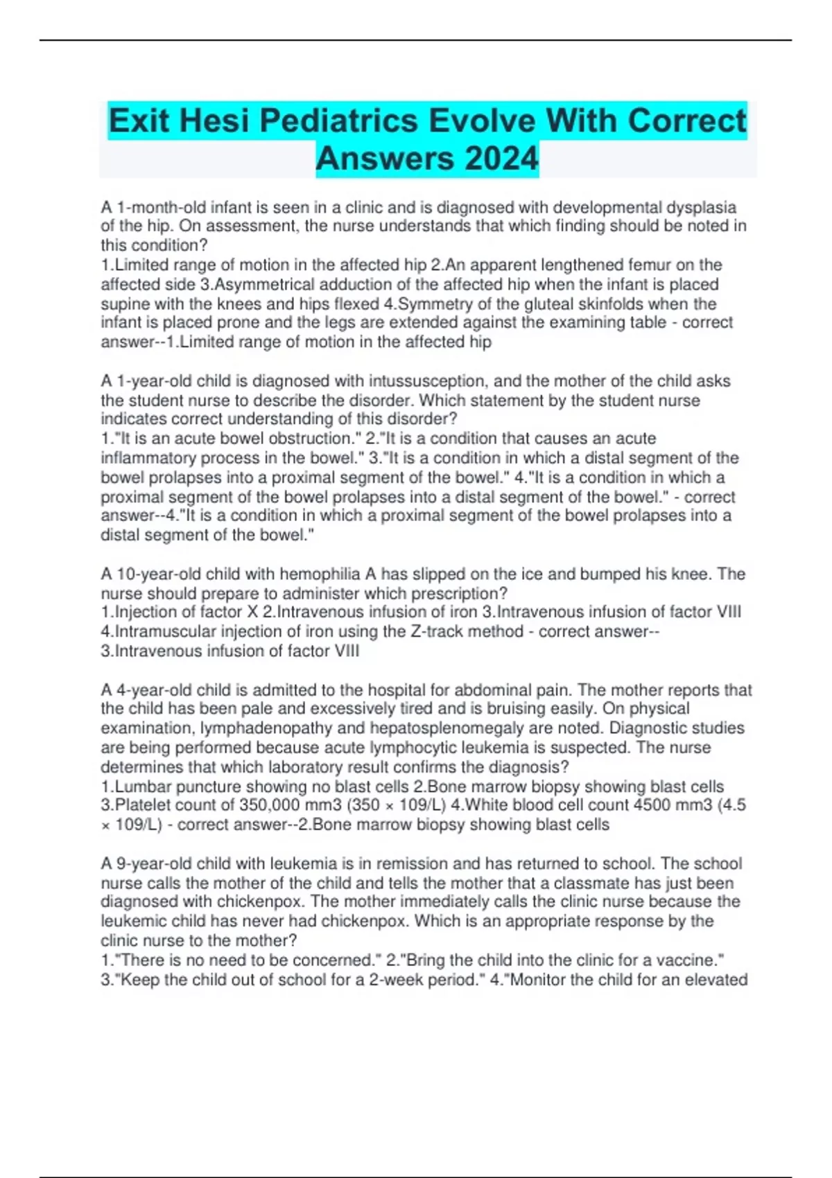 Exit Hesi Pediatrics Evolve With Correct Answers 2024