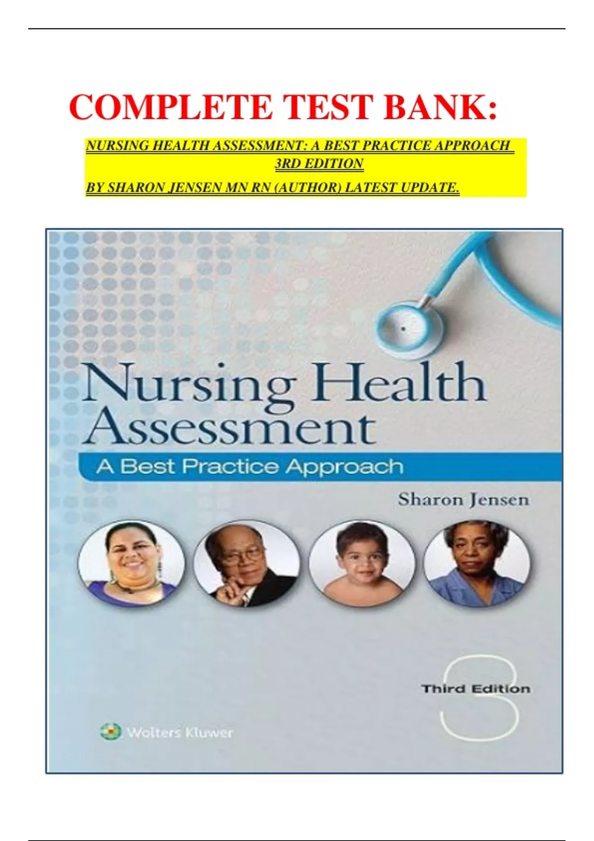 COMPLETE TEST BANK: NURSING HEALTH ASSESSMENT: A BEST PRACTICE APPROACH 3RD EDITION BY SHARON JENSEN MN RN (AUTHOR) LATEST UPDATE.