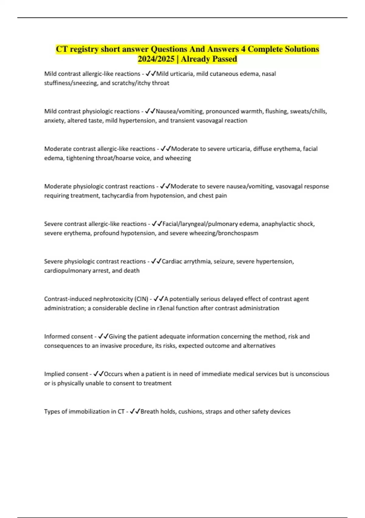 CT registry short answer Questions And Answers 4 Complete Solutions 2024/2025 | Already Passed