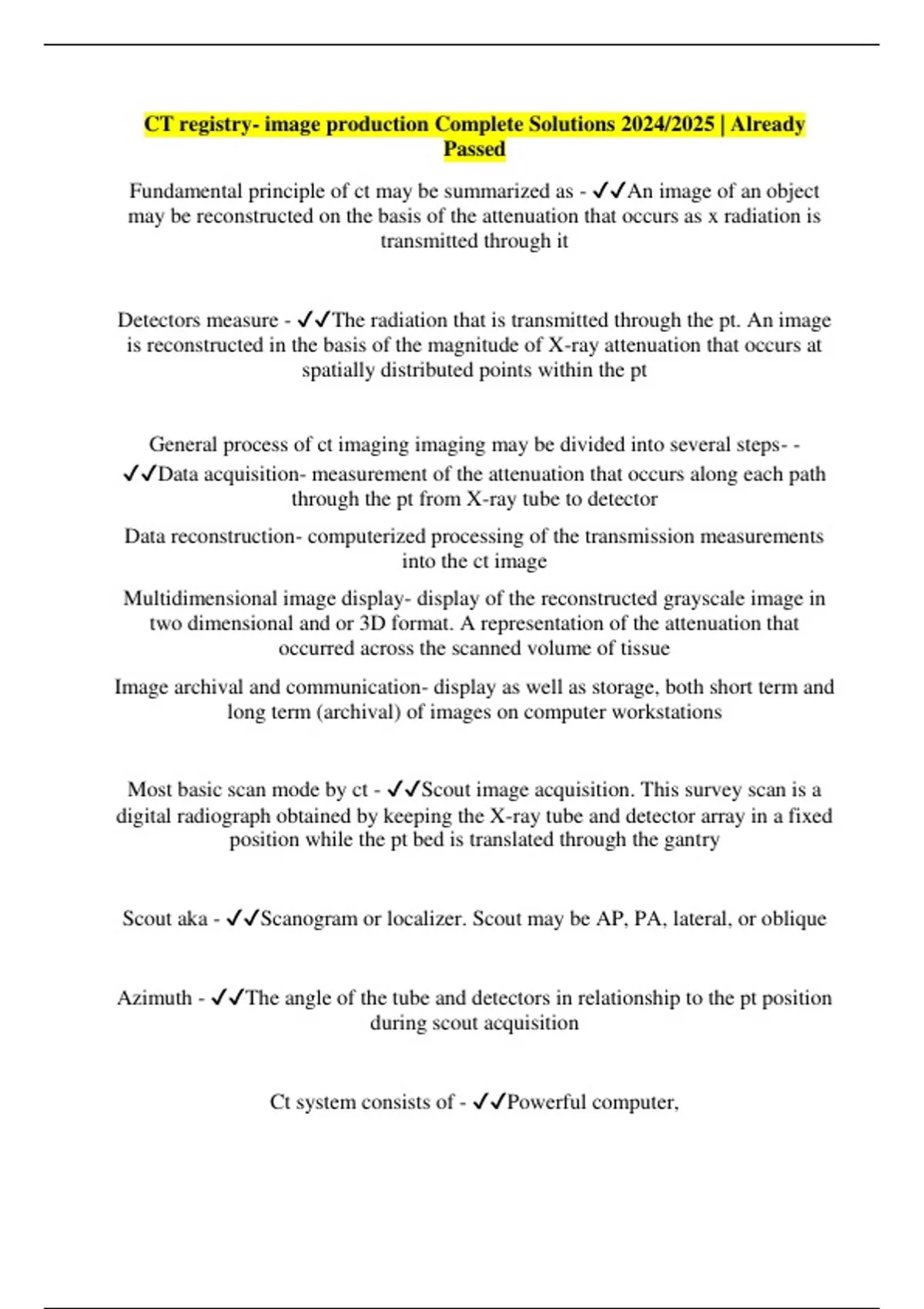 CT registry- image production Complete Solutions 2024/2025 | Already Passed