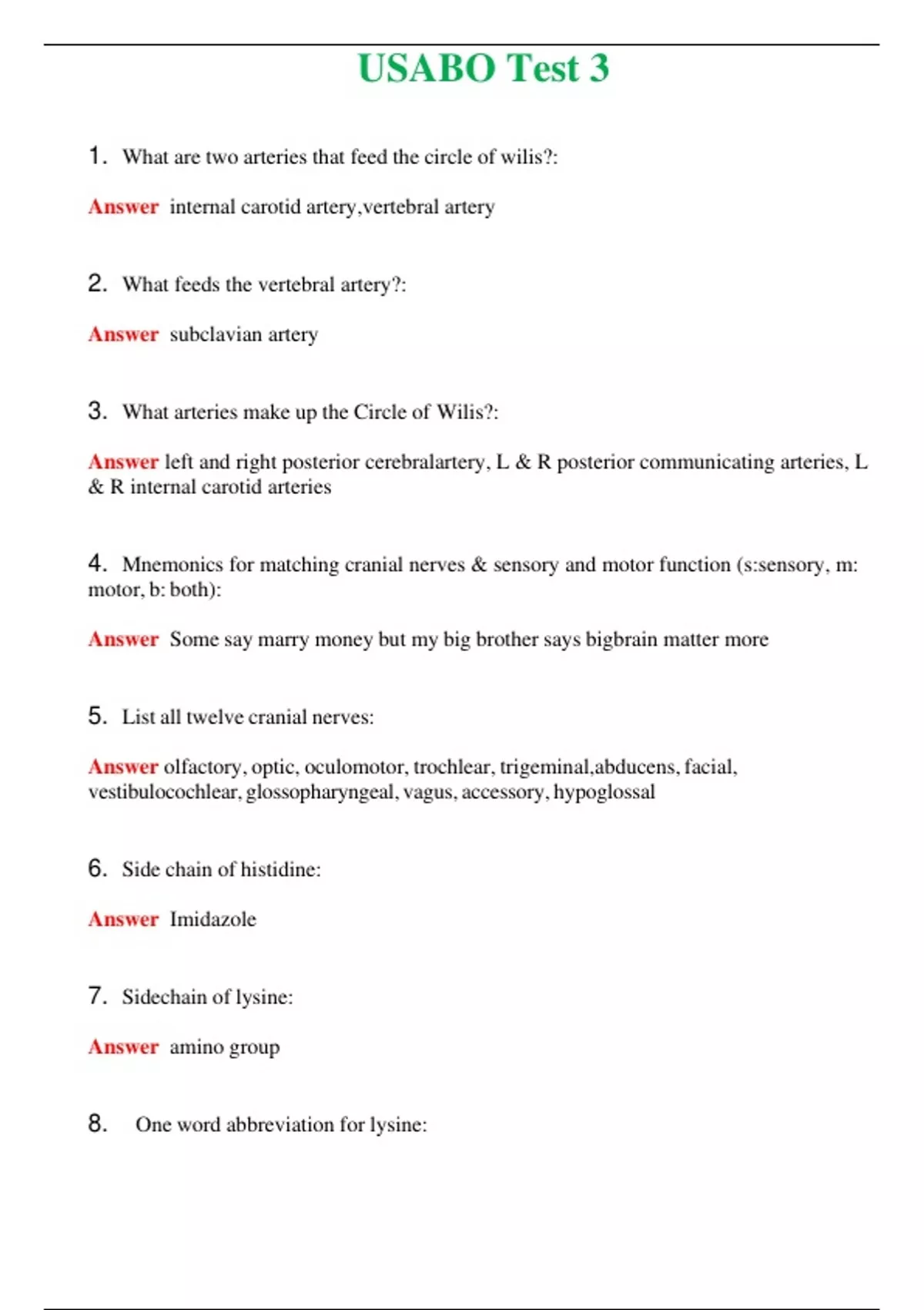 USABO Test 3 (Latest 2024) Questions With Complete Grade A+ Answers