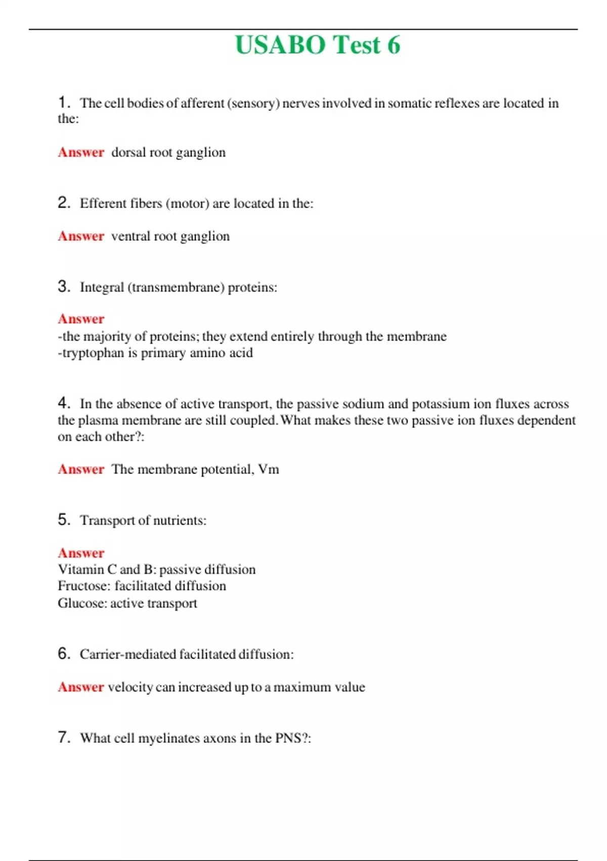 USABO Test 6 (Latest 2024) Questions With Complete Grade A+ Answers