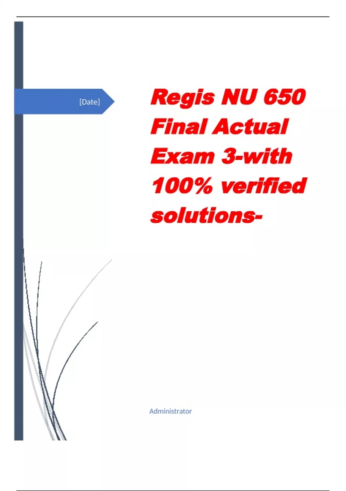 Regis NU 650 Final Actual Exam 3-with 100% verified solutions-