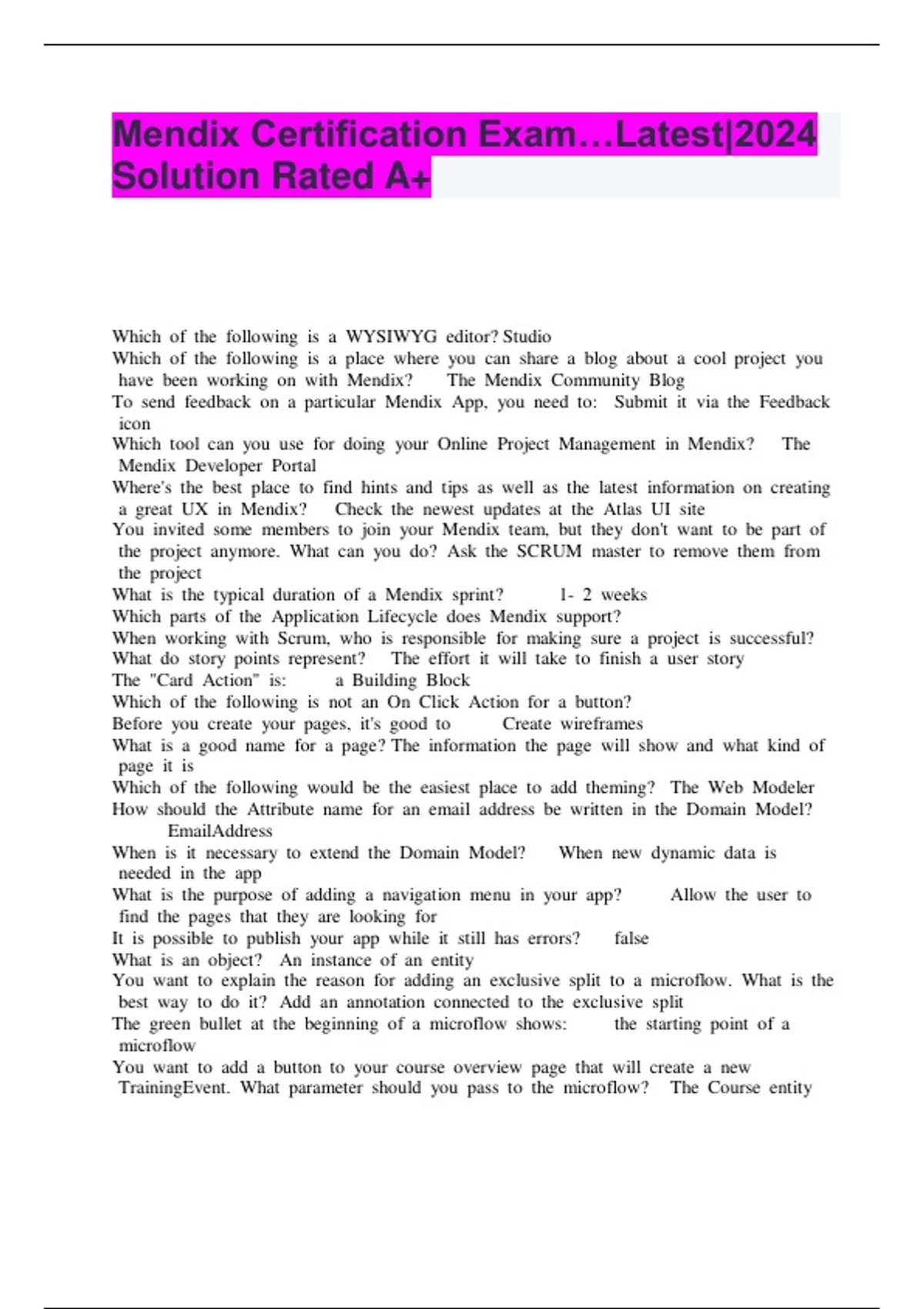 Mendix Certification Exam…Latest|2024 Solution Rated A+