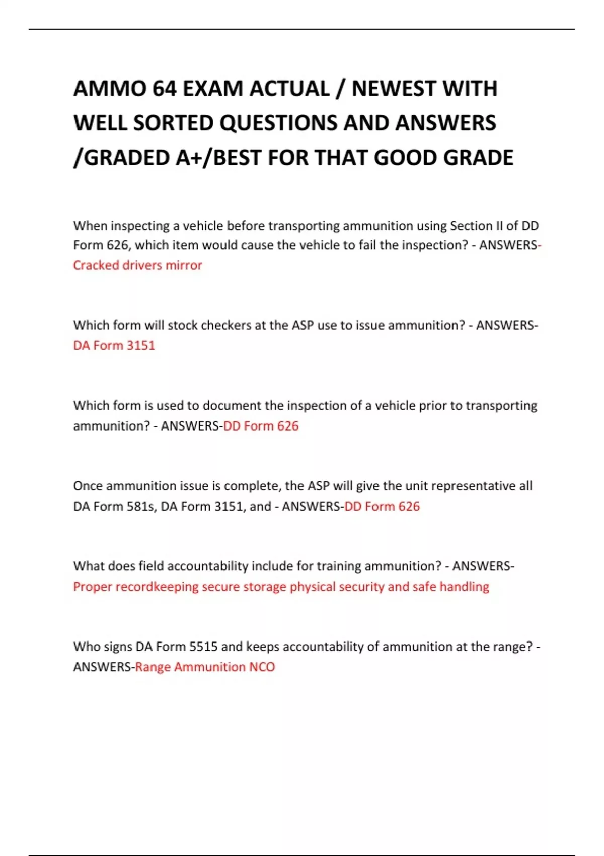 AMMO 64 EXAM ACTUAL 2024 / NEWEST WITH WELL SORTED QUESTIONS AND ANSWERS /GRADED A+/BEST FOR THAT GOOD GRADE
