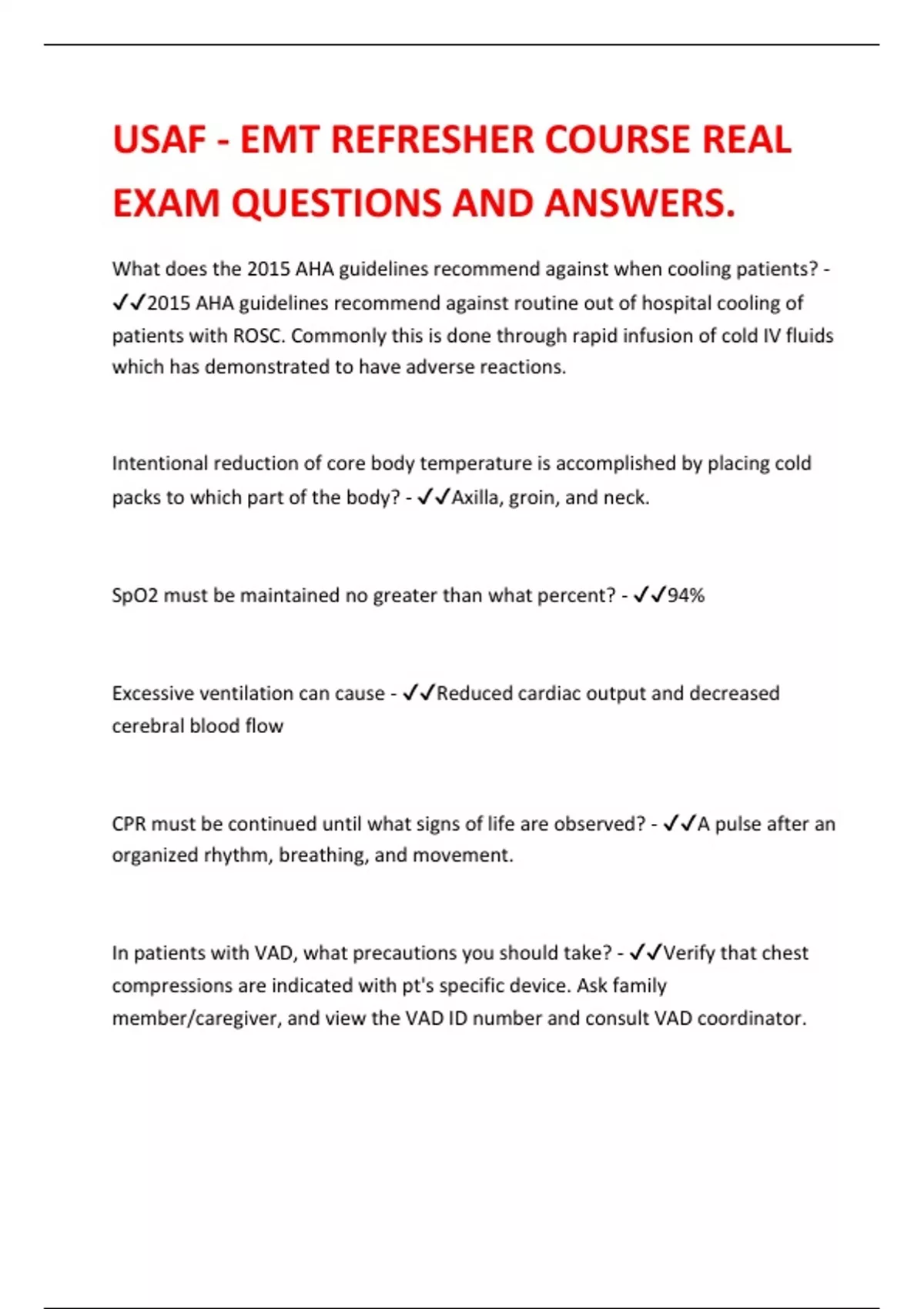 USAF - EMT REFRESHER COURSE REAL EXAM QUESTIONS AND ANSWERS.