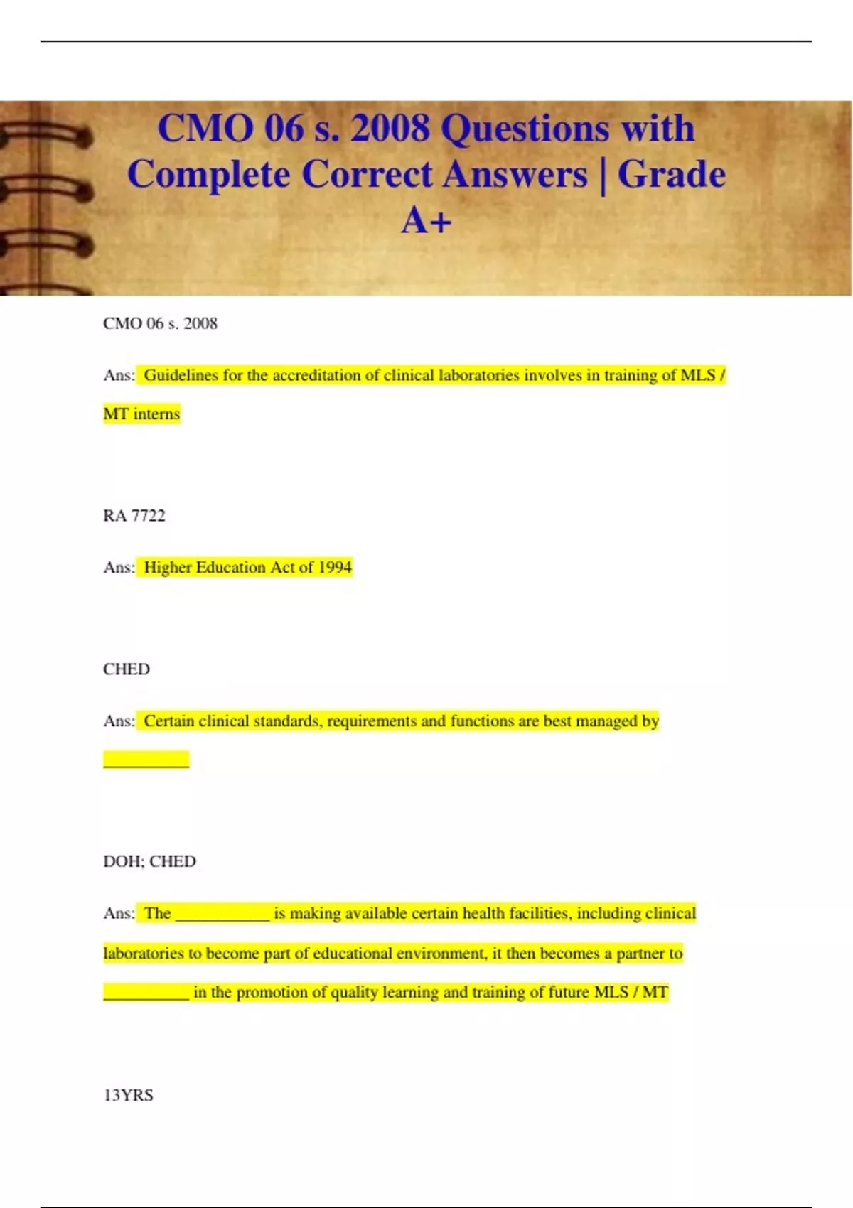 CMO 06 s. 2008 Questions with Complete Correct Answers | Grade A+