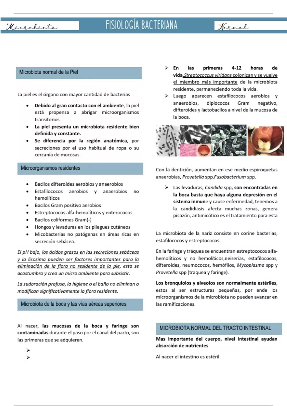Al nacer, las mucosas de la boca y faringe son MICROBIOTA NORMAL DEL TRACTO INTESTINAL