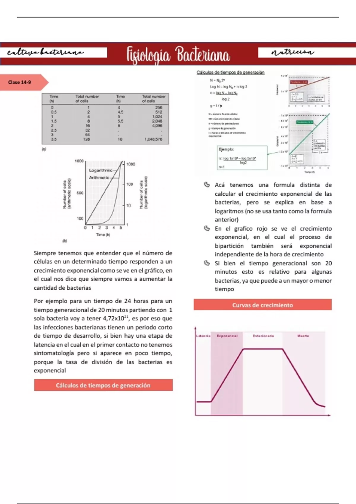 células en un determinado tiempo responden a un Si bien el tiempo generacional son 20