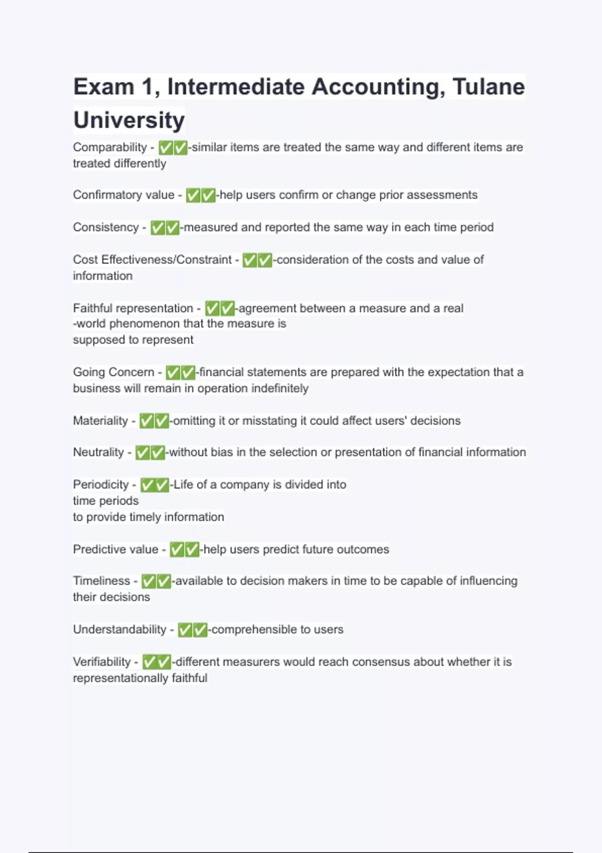 Exam 1, Intermediate Accounting, Tulane University (ANSWERS) 2024 - DISTINCTION GUARANTEED / Complete Verified Latest Version