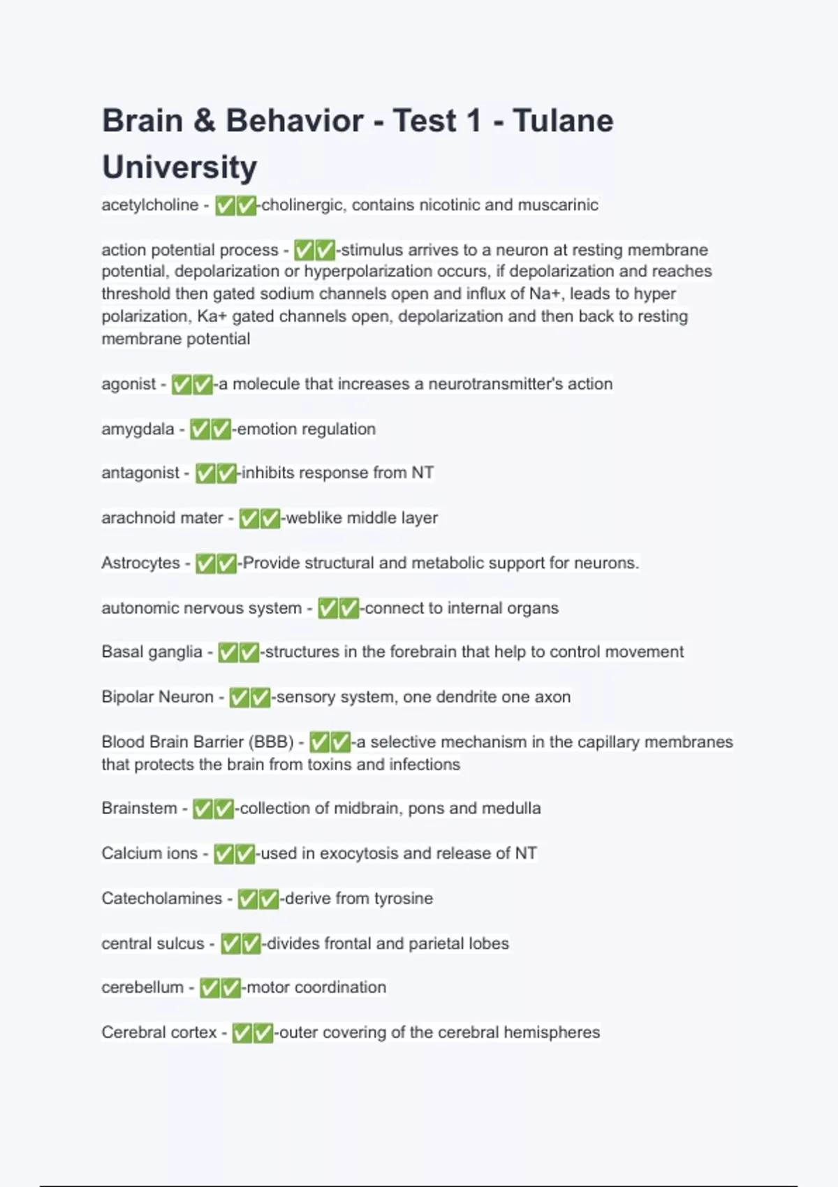 Brain & Behavior - Test 1 - Tulane University (ANSWERS) 2024 - DISTINCTION GUARANTEED / Complete Verified Latest Version