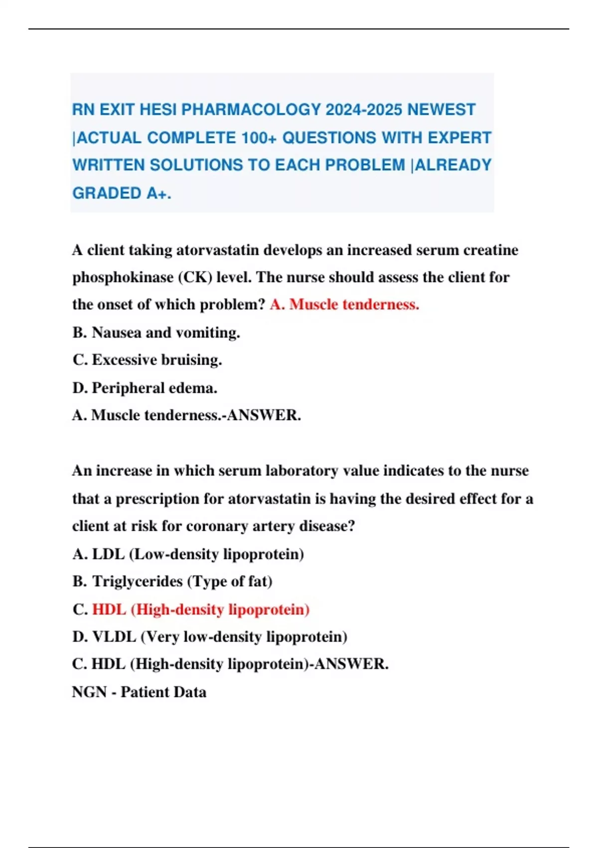 RN EXIT HESI PHARMACOLOGY NEWEST |ACTUAL COMPLETE 100+ QUESTIONS WITH EXPERT WRITTEN SOLUTIONS TO EACH PROBLEM |ALREADY GRADED A+. RN EXIT HESI PHARMACOLOGY NEWEST |ACTUAL COMPLETE 100+ QUESTIONS WITH EXPERT WRITTEN SOLUTIONS TO EACH PROBLEM |ALREADY GRADED A+. RN EXIT HESI PHARMACOLOGY NEWEST |ACTUAL COMPLETE 100+ QUESTIONS WITH EXPERT WRITTEN SOLUTIONS TO EACH PROBLEM |ALREADY GRADED A+. RN EXIT HESI PHARMACOLOGY NEWEST |ACTUAL COMPLETE 100+ QUESTIONS WITH EXPERT WRITTEN SOLUTIONS TO EACH PROBLEM |ALREADY GRADED A+. RN EXIT HESI PHARMACOLOGY NEWEST |ACTUAL COMPLETE 100+ QUESTIONS WITH EXPERT WRITTEN SOLUTIONS TO EACH PROBLEM |ALREADY GRADED A+. RN EXIT HESI PHARMACOLOGY NEWEST |ACTUAL COMPLETE 100+ QUESTIONS WITH EXPERT WRITTEN SOLUTIONS TO EACH PROBLEM |ALREADY GRADED A+.