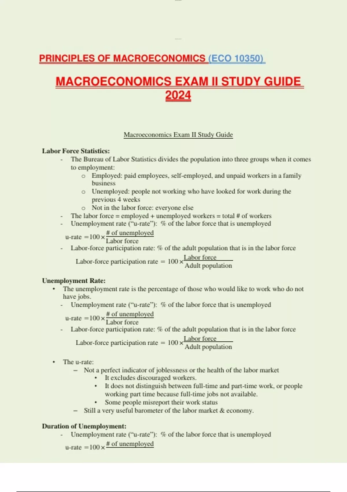 PRINCIPLES OF MACROECONOMICS (ECO 10350) MACROECONOMICS EXAM II STUDY GUIDE 2024
