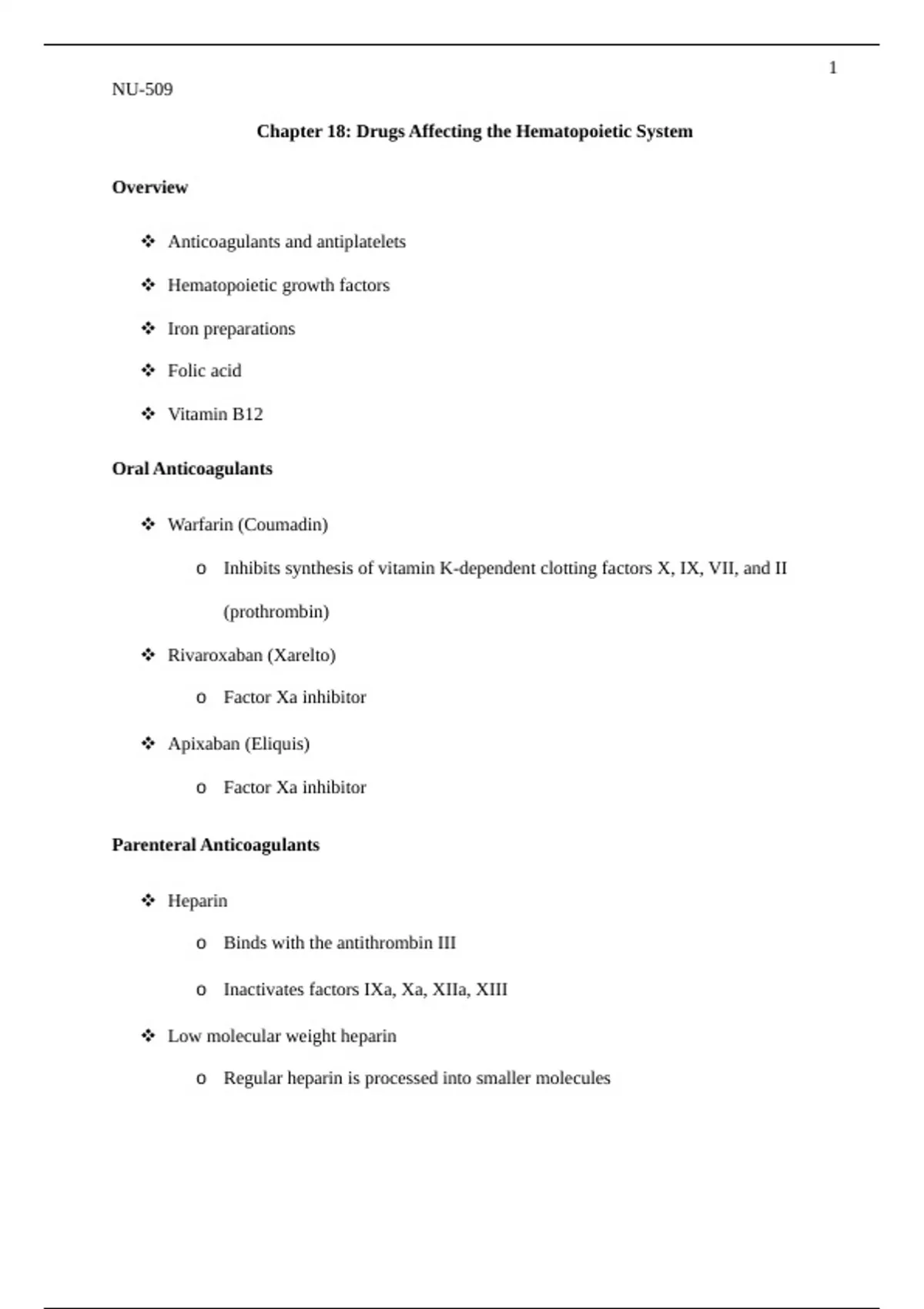NR 508 Chapter 18: Drugs Impacting the Hematopoietic System – Download for Review