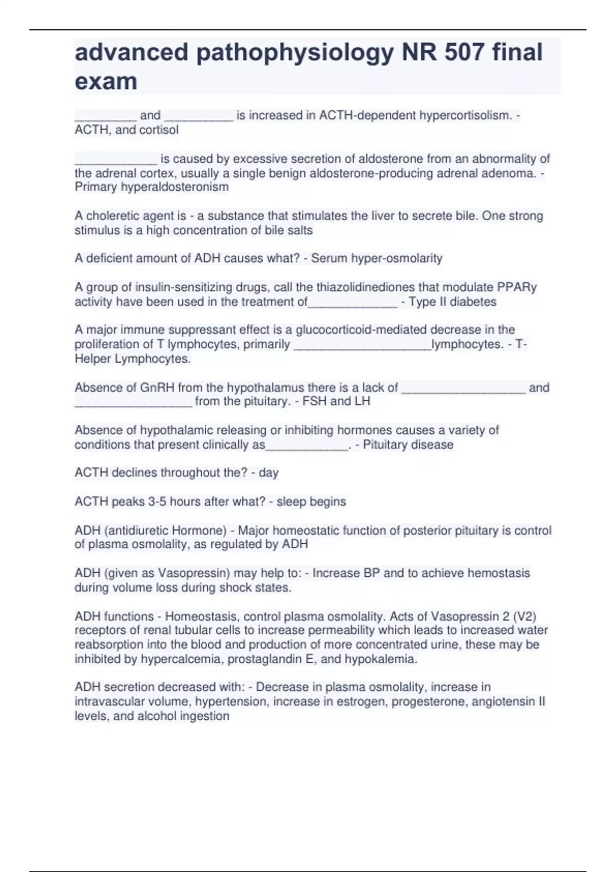 advanced pathophysiology NR 507 final exam
