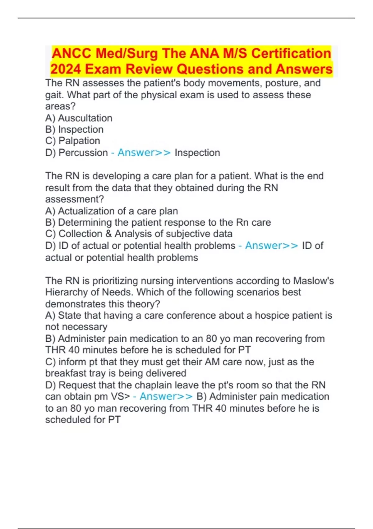 ANCC Med/Surg The ANA M/S Certification 2024 Exam Review Questions and Answers