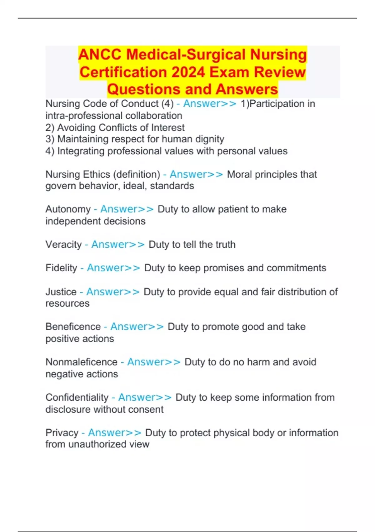 ANCC Medical-Surgical Nursing Certification 2024 Exam Review Questions and Answers