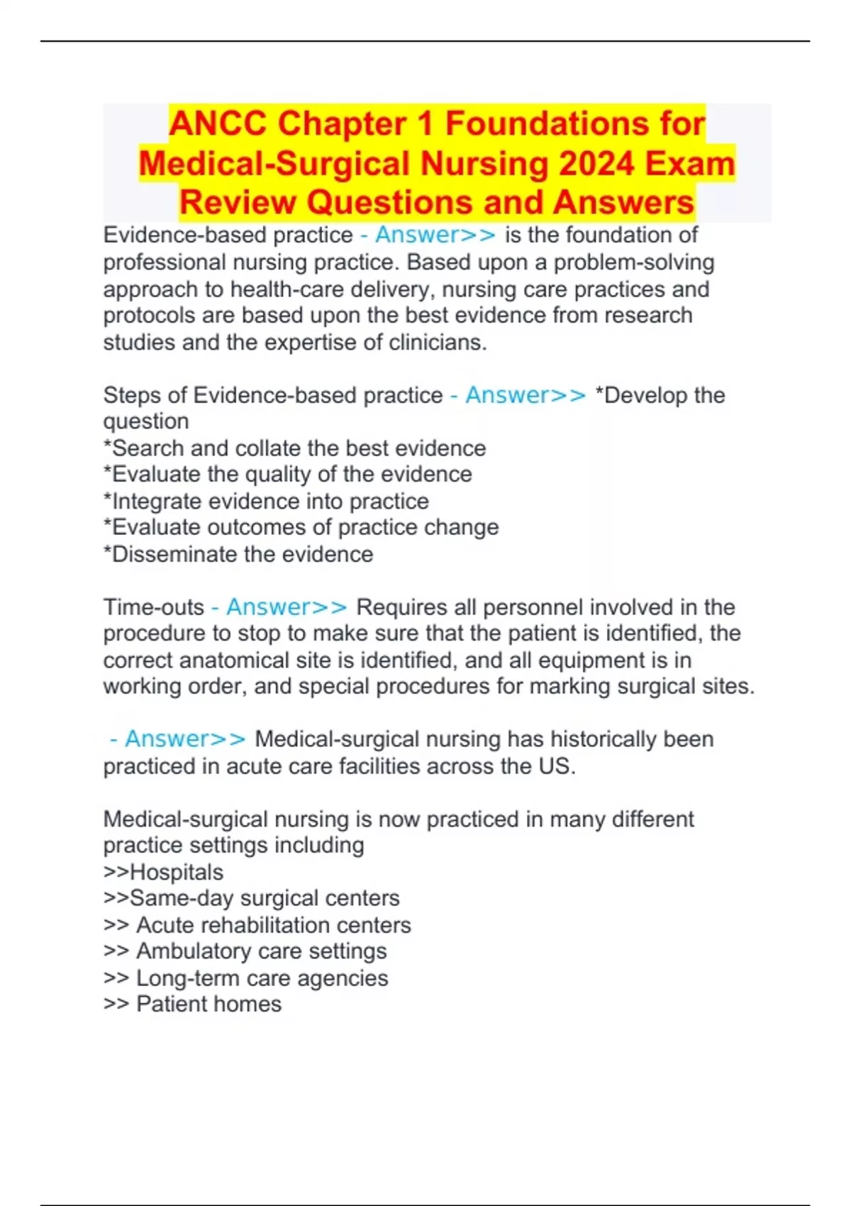 ANCC Chapter 1 Foundations for Medical-Surgical Nursing 2024 Exam Review Questions and Answers