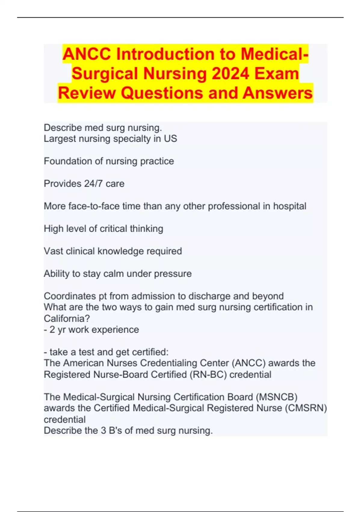 - ANCC Medical-Surgical Nursing