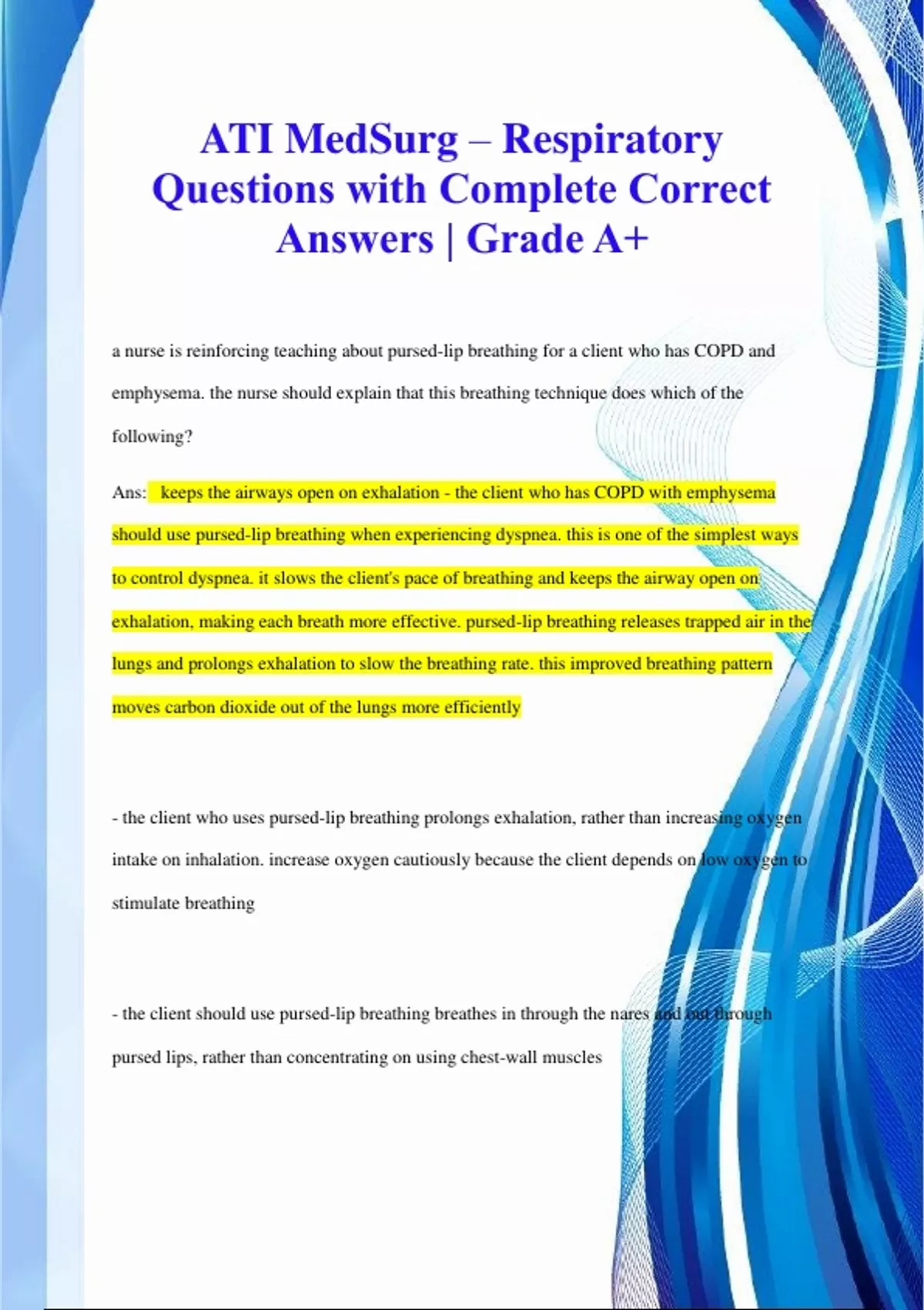 ATI MedSurg – Respiratory Questions with Complete Correct Answers | Grade A+
